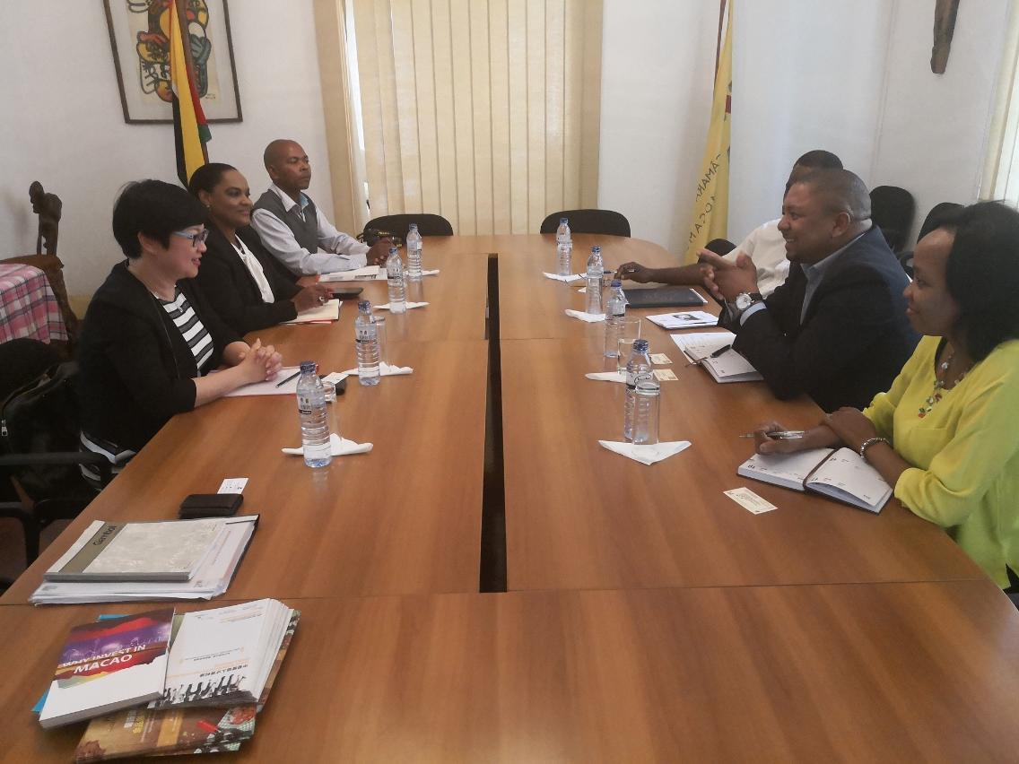 Durante o encontro com o Senhor Primeiro-Ministro, Dr. Carlos Agostinho do Rosário, este manifestou o desejo de, através da plataforma proporcionada por Macau, desenvolver os mercados da China e dos países lusófonos, no sentido de atrair maior número de empresas a investirem no seu país. A Vogal Executiva do IPIM, Dra. Glória Batalha Ung, fez uma apresentação sobre a Plataforma de Serviços para a Cooperação Comercial entre a China e os Países de Língua Portuguesa, que constituiu uma orientação para o desenvolvimento da cidade de Macau, bem como as vantagens singulares da referida plataforma, e, bem assim, a situação dos trabalhos desenvolvidos no âmbito do Fórum para a Cooperação Económica e Comercial entre a China e os Países de Língua Portuguesa (Macau). Manifestou igualmente o seu apreço em Moçambique ter aceite desempenhar o papel de “País Parceiro” na próxima edição da Feira Internacional de Macau (MIF), a realizar-se entre 18 a 20 de Outubro do corrente ano, tendo igualmente convidado aquele país a organizar delegações para participar na MIF e na Exposição de Produtos e Serviços dos Países de Língua Portuguesa (Macau) 2018 (2018PLPEX), a realizar-se paralelamente com a MIF, no sentido de, por essa via, desenvolver não só os mercados da China mas também os outros mercados do mundo.