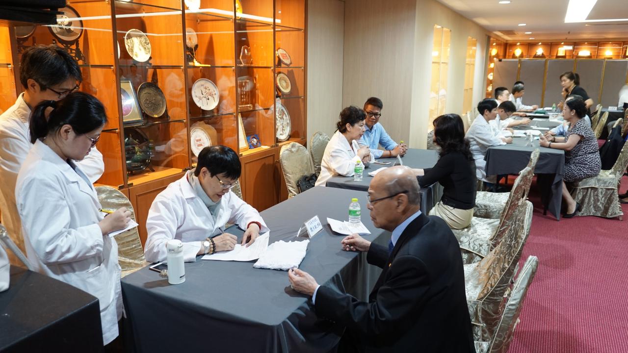 Foram convidados para a sessão de Intercâmbio, o Director dos Serviços de Saúde da RAEM, Lei Chin Ion, o Presidente da Câmara do Comércio Tailândia-China, Chen Zhenzhi, o Presidente Hononário do Hospital de Medicina Tradicional Chinesa de Guangdong, Lyu Yubo, o Presidente da Associação de Médicos de Medicina Tradicional Chinesa da Tailândia, Lin Danqian, entre outros, tendo essa iniciativa decorrida no 9º. andar da Câmara do Comércio Tailândia-China. Igualmente, estiveram presentes nessa iniciativa, cerca de 15 profissionais, incluindo especialistas de renome em MTC do Hospital de Medicina Tradicional Chinesa da Província de Guangdong da China, médicos assistentes de MTC da Tailândia, e jovens médicos de MTC de Macau que prestaram serviços clínicos, através de consulta, diagnóstico do pulso, acupuntura e moxibustão, massagem, ventosa bem como aconselhamento de formas de tratamento relativas aos cuidados de saúde em MTC, em prol da população Tailandesa, atraindo cerca de 200 participantes.