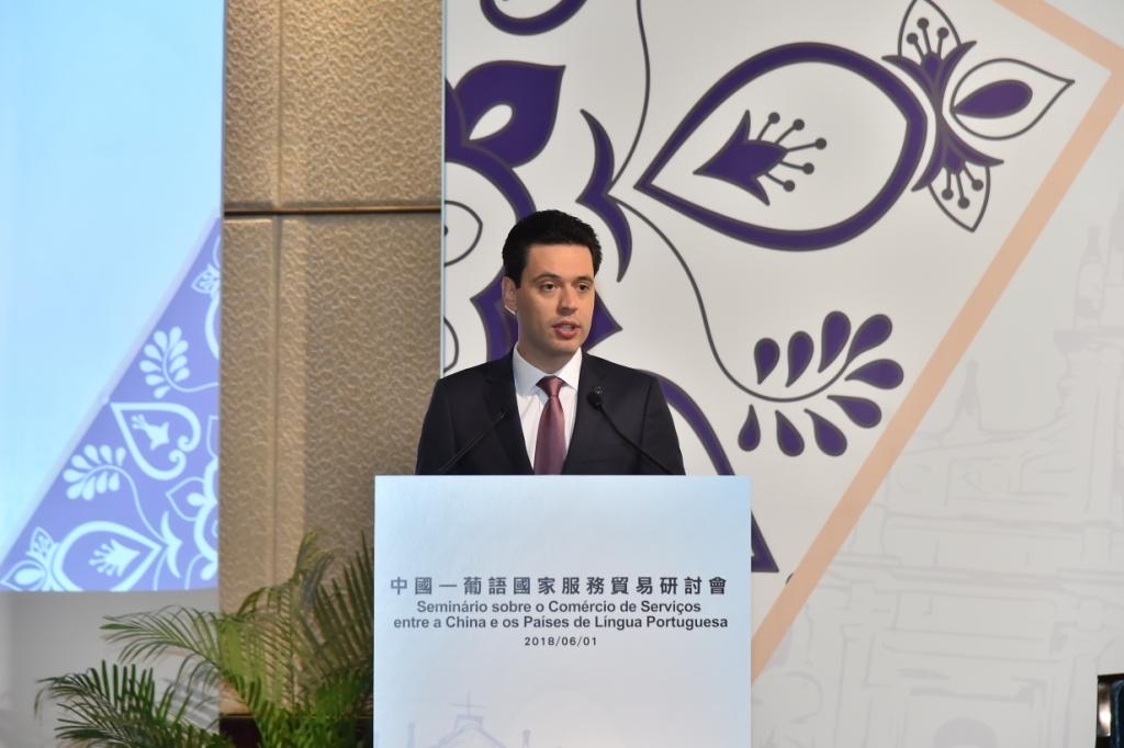 Decorreu, no dia 1 de Junho, no Hotel MGM, o Seminário sobre o Comércio de Serviços entre a China e os Países de Língua Portuguesa. Trata-se de uma organização conjunta do Secretariado Permanente do Fórum para a Cooperação Económica e Comercial entre a China e os Países de Língua Portuguesa (Macau) e do Instituto de Promoção do Comércio e do Investimento de Macau, contando com o apoio da Federação Empresarial da China e dos Países de Língua Portuguesa. O Seminário teve como tema principal a cooperação regional e oportunidades de comércio no sector de serviços, as partes trocaram impressões sobre formas de entrar no vasto mercado da Região da Grande Baía Guangdong - Hong Kong – Macau no sector de serviços, utilizando as vantagens da plataforma de Macau, de modo a promover a cooperação económica e comercial entre a China e os Países de Língua Portuguesa. A Secretária-Geral do Secretário Permanente do Fórum de Macau, Dra. Xu Yingzhen, e o Vice-Ministro de Comércio e Serviços do Brasil, Dr. Douglas Finardi Ferreira participaram no Seminário, apresentando discursos de boas vindas.