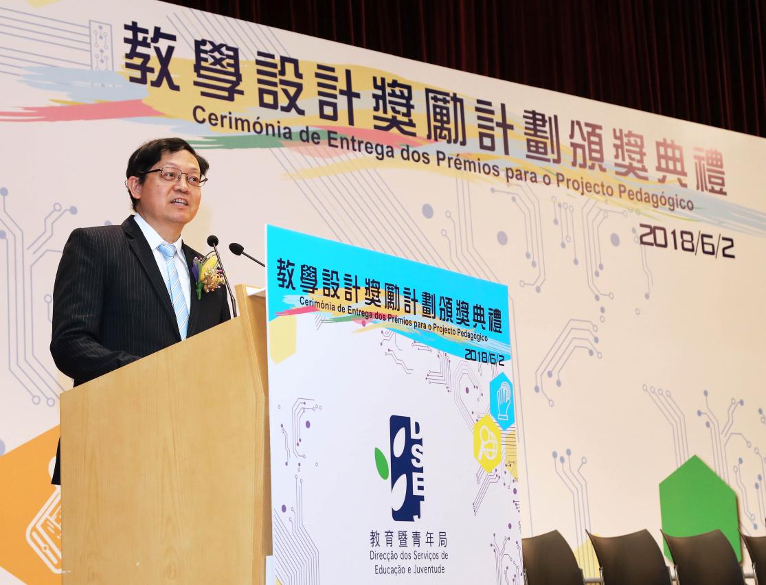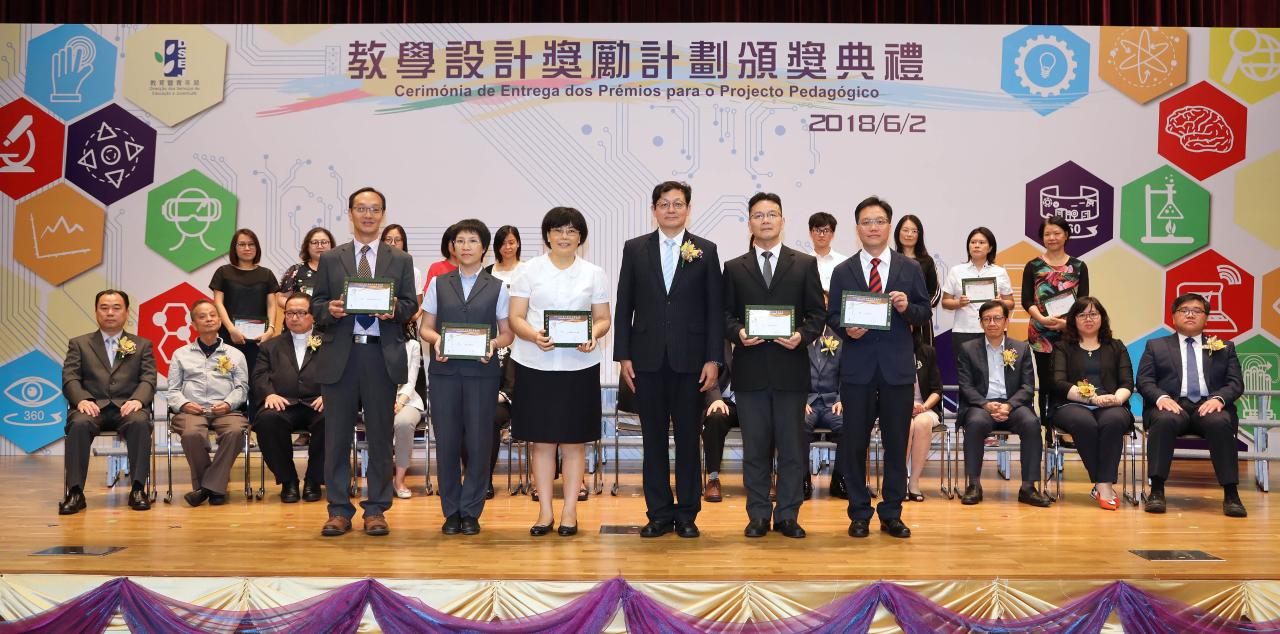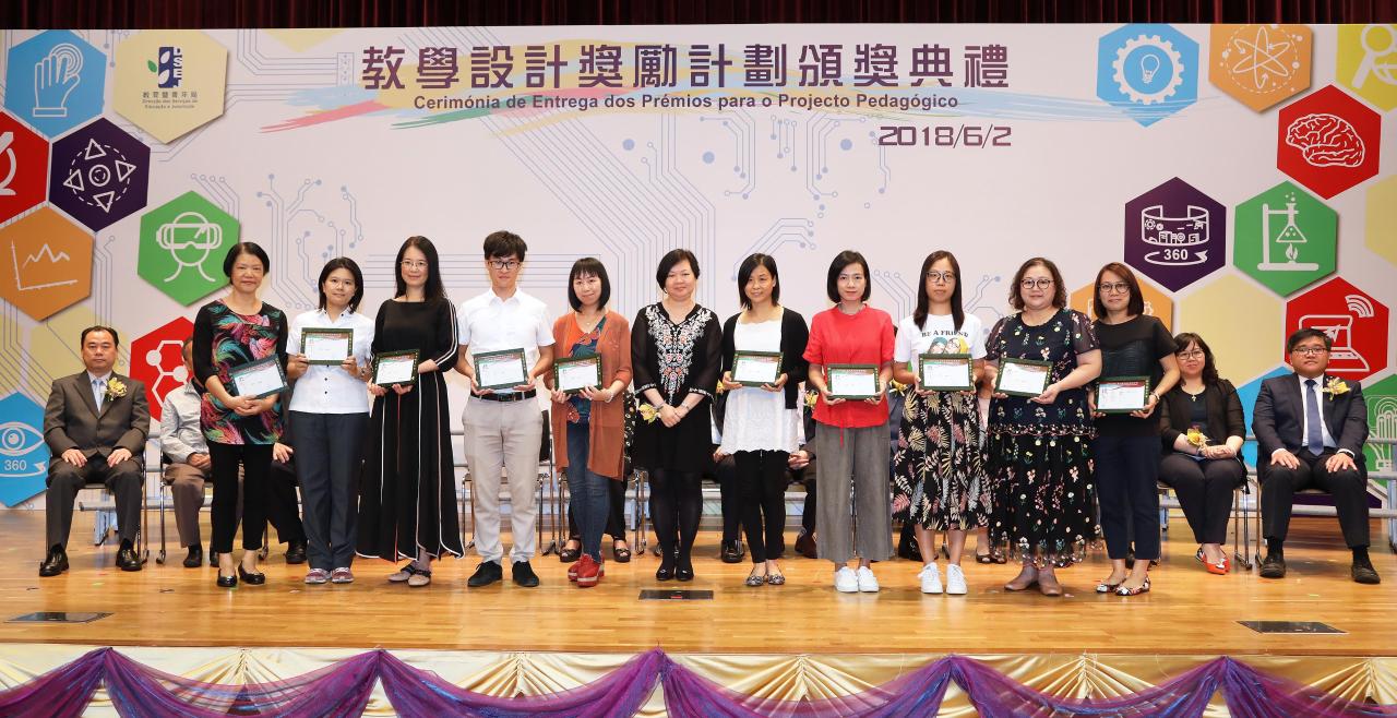 De modo a permitir ao pessoal docente e às escolas partilharem, em conjunto, o sucesso e a satisfação pelos prémios obtidos, a Direcção dos Serviços de Educação e Juventude (DSEJ) realizou, no dia 2 de Junho, na Escola Keang Peng (Secção Primária), a Cerimónia de Entrega dos Prémios para o Projecto Pedagógico do Ano Lectivo de 2016/2017 e organizou, ainda, uma exposição dos projectos premiados. Por seu lado, a Cerimónia de Entrega dos Prémios decorreu em atmosfera muito animada e contou com a presença dos seguintes convidados: o director da DSEJ, Lou Pak Sang, a subdirectora da DSEJ, Leong Vai Kei, o subdirector substituto, Wong Kin Mou e os chefes das subunidades, bem como os representantes e os membros do júri oriundos da Universidade de Macau, do Instituto Politécnico de Macau, da Universidade de São José, da Associação de Educação de Macau, da Associação das Escolas Católicas de Macau, da Associação de Estudos de Matemática de Macau e da Associação de Academia da Informática de Macau, os vogais do Conselho de Educação para o Ensino Não Superior e do Conselho Profissional do Pessoal Docente, os membros do Grupo Coordenador e Consultivo dos Trabalhos dos Cursos de Formação do Pessoal Docente e ainda os directores das escolas e o pessoal docente premiado, num total de cerca de 600 pessoas.