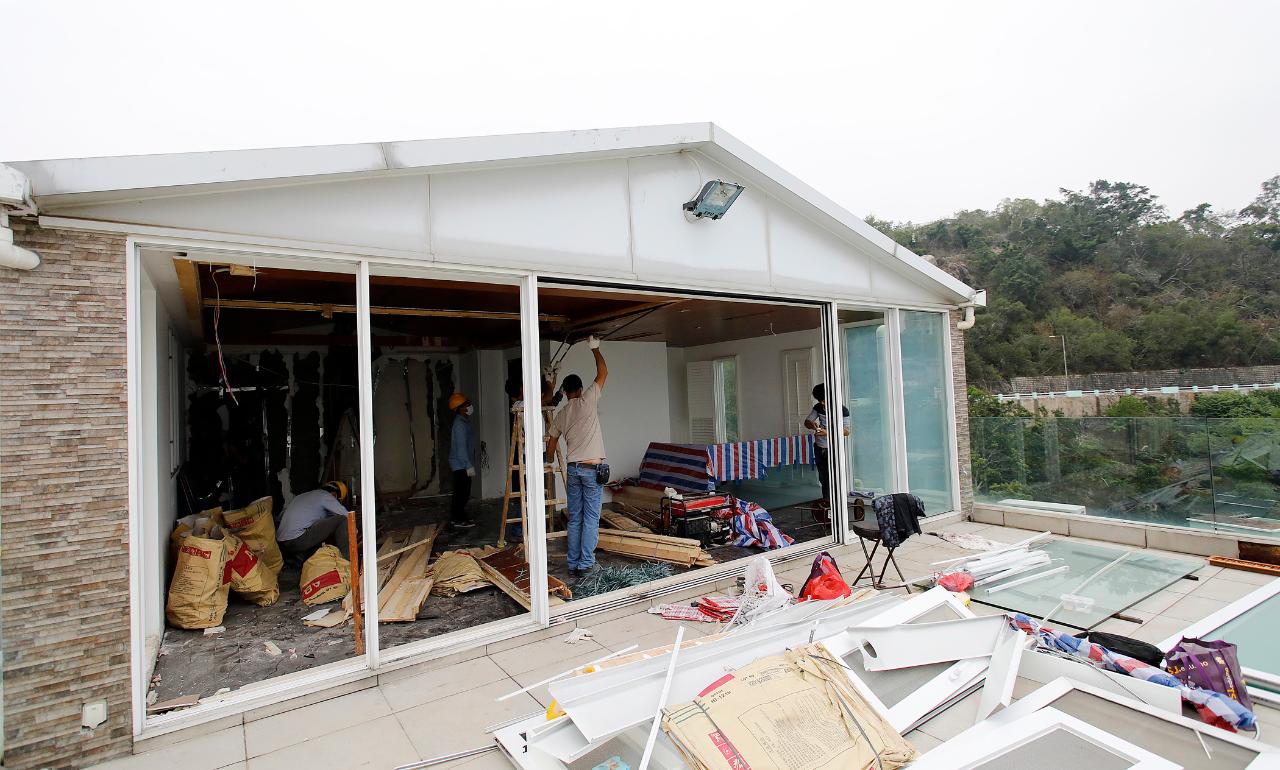 Em Abril do corrente ano, o “Grupo Permanente de Trabalho Interdepartamental para Demolição e Desocupação das Obras Ilegais” (adiante designado por grupo) demoliu obra ilegal no terraço dos dois prédios na Rua Central e Avenida da República, respectivamente. No terraço do edifício baixo da Rua Central encontrava-se construção clandestina constituída pela cobertura e suporte metálicos e tapumes de madeira. Recebida a respectiva queixa no ano transacto, a Direcção dos Serviços de Solos, Obras Públicas e Transportes (DSSOPT) deu logo seguimento e exigiu que o infractor procedesse à demolição e reposição do terraço, por iniciativa própria, dentro do prazo fixado para o efeito. Expirado o referido prazo sem que a demolição se mostre realizada, o grupo procedeu à acção de demolição. No terraço do edifício da Avenida da República encontrava-se construção clandestina constituída pela cobertura e portão metálicos, placas e janelas de vidro e paredes de alvenaria. Recebida a queixa, a DSSOPT deu seguimento. Decorrido o respectivo prazo sem que a obra ilegal seja demolida, o grupo procedeu à acção de demolição.