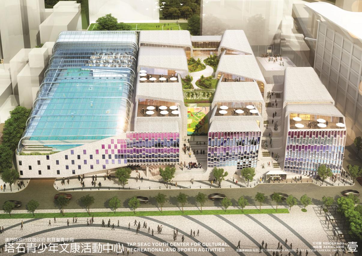O Centro Juvenil de Actividades Culturais, Recreativas e Desportivas do Tap Seac incluirá um parque de estacionamento público, piscinaaquecida, de temperatura constante, aberta durante todo o ano, zona de actividades culturais e recreativas para jovens, sala de artes e espectáculos, bem como o Conservatório de Macau, sendo que, a maior parte destas instalações vai ser aberta à utilização pública. Os anúncios do referido concurso público do serviço de concepção e planeamento foram publicados nos dias 27 de Setembro e 25 de Outubro de 2017, a cerimónia do acto público do concurso realizou-se no dia 6 de Março de 2018, foram recebidas 11 propostas, entre as quais 9 foram admitidas pela comissão de abertura das propostas.