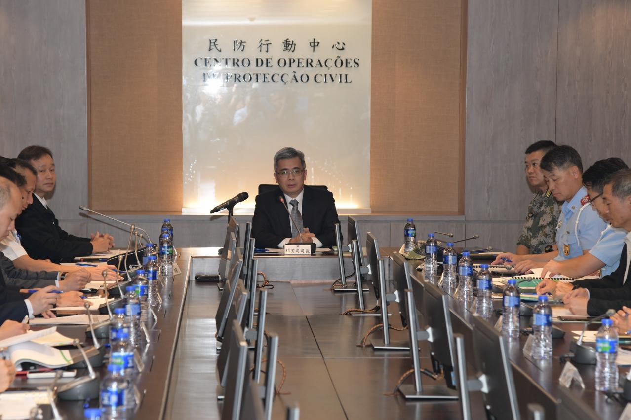 O senhor Secretário para a Segurança instruiu os membros da estrutura de Protecção Civil para terem em mente a experiência do Tufão “Hato”, tomarem atempadamente e rigorosamente todas as medidas de prevenção ao tufão e às inundações segundo as suas atribuições e prestarem atenção à situação da cidade para ajustar atempadamente os trabalhos em conformidade com a mudança do tempo, a fim de reduzir ao máximo os efeitos adversos causados pelo desastre natural e proteger a vida dos residentes e turistas.