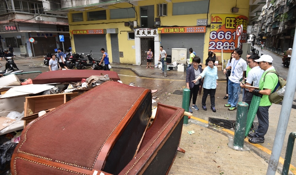 A Dra. Sónia Chan notou a existência de comidas inundadas ou contaminadas abandonadas fora dos depósitos de lixo. Ela apelou aos cidadãos e lojas que tivessem cuidado na disposição das comidas contaminadas, para evitar que alguém as recolha para comer, prejudicando a saúde. Ela afirmou que o Instituto para os Assuntos Cívicos e Municipais tem intensificado as inspecções sanitárias em diversas zonas da cidade e coordenado com a CSR Macau — Companhia de Sistemas de Resíduos, Limitada nos trabalhos de limpeza e recolha de resíduos, aspirando que a cooperação entre o Governo e o público possa restaurar o mais rápido possível a imagem da cidade.