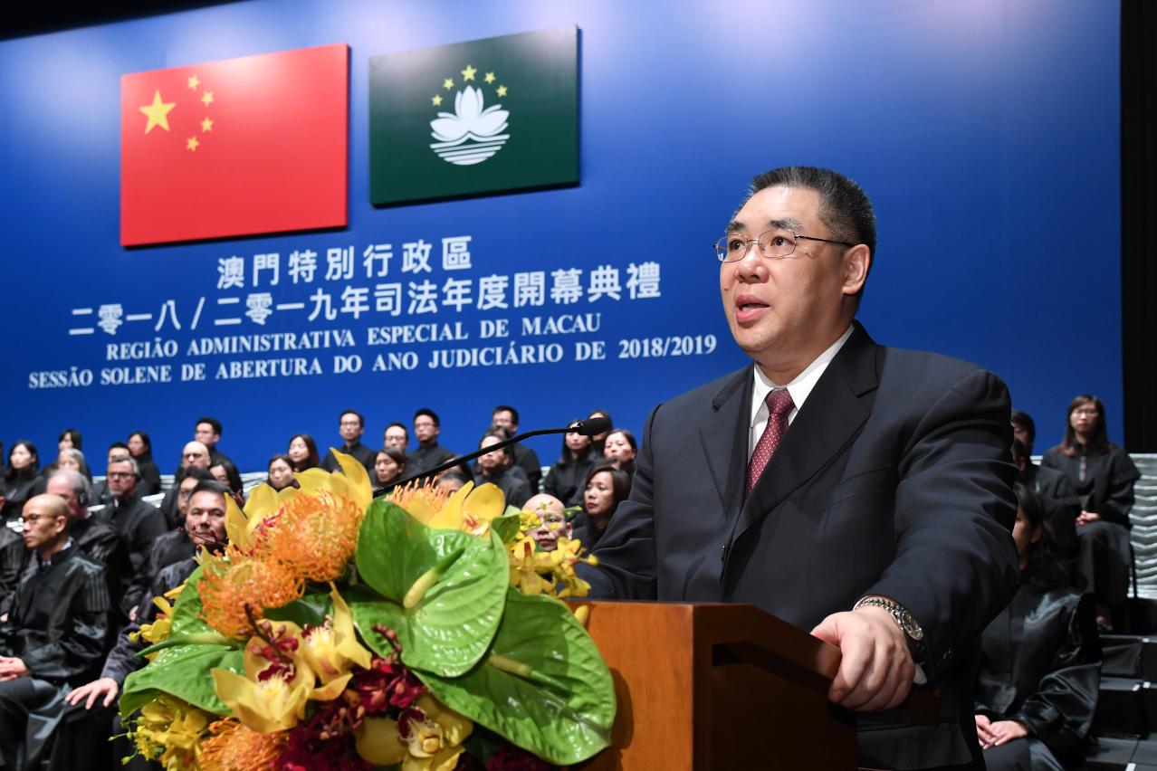 Chui Sai On presidiu, esta tarde no Centro Cultural de Macau, à sessão solene de abertura do Ano Judiciário de 2018/2019 da RAEM, evento que contou a presença e discursos do presidente do Tribunal de Última Instância, Sam Hou Fai, do procurador do Ministério Público, Ip Son Sang, e do presidente da Associação de Advogados de Macau, Jorge Neto Valente.