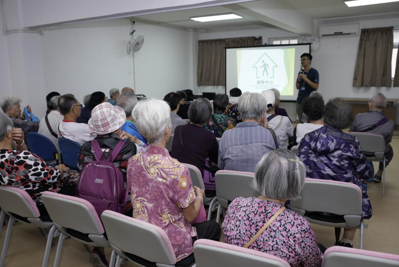 Durante a palestra, o representante do CB apresentou detalhadamente os conteúdos, os objectivos e a organização do trabalho da activação do plano de evacuação das zonas baixas em situações de “Storm Surge” durante a passagem de tufão junto dos participantes, a explicação sobre preparação para prevenção de desastres antes da passagem de tufão, a lista do estojo de emergência, os conhecimentos sobre prevenção de desastres relativos aos elementos a ter em consideração na escolha das vias de evacuação e às observações, a apresentação dos 16 centros de abrigo localizados na península de Macau e nas Ilhas e o local de encontro para pessoas com necessidades especiais, para os habitantes compreenderem melhor o fluxo de funcionamento do plano de evacuação. Por fim, o representante desta Corporação levou os participantes ao Centro de Acolhimento da Ilha Verde sob a coordenação do Instituto de Acção Social, de modo a visitar as instalações do Centro e conhecer o respectivo funcionamento.