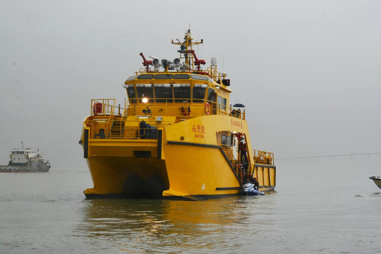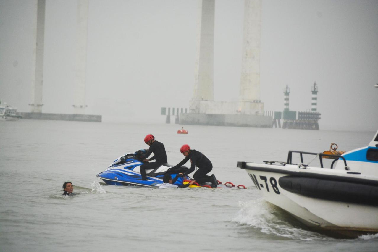 Recebida a notificação, o Centro de Gestão de Tráfego Marítimo accionou imediatamente o “Plano de resposta a acidente no mar”, o Centro de coordenação de busca e salvamento entrou logo em funcionamento e dirigiu as operações de busca e salvamento. A DSAMA e os Serviços de Alfândega (S.A.) enviaram embarcações ao local para realizar as operações de busca e salvamento, a lancha de fiscalização “A3” dos S.A. em serviço desempenhou as funções de direcção no local, foi utilizado o drone para determinar a localização das três pessoas caídas, essas pessoas foram salvas pela lancha da DSAMA, lancha e moto de água dos S.A. respectivamente, as mesmas foram levadas às embarcações de salvamento da DSAMA, “Nam Van” e “Sai Van”. Regressados ao Terminal Marítimo de Passageiros do Porto Exterior, os feridos foram triados, receberam os tratamentos urgentes e transferidos para hospital.