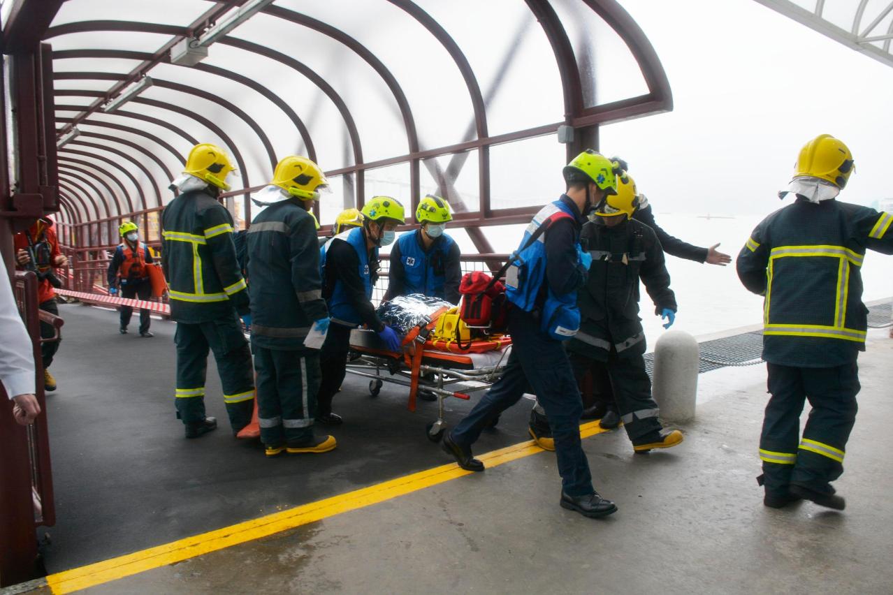 O presente exercício teve lugar hoje às 10h30 da manhã nas áreas marítimas em frente do Centro de Ciência de Macau, perto do canal de acesso ao Porto Interior e do canal reservado do Porto Exterior, os acidentes simulados foram: uma embarcação de passeio marítimo “Passeio Marítimo 1” que estava a navegar em direcção a leste do canal de acesso ao Porto Interior, ao tentar ultrapassar outra embarcação de passeio marítimo “Passeio Yuet”, causou um abalroamento, a proa de “Passeio Marítimo 1” foi danificada, a sua capacidade de autopropulsão ficou limitada, o número de pessoas (tripulantes e passageiros) a bordo foi de 25, entre eles 6 passageiros foram ligeiramente feridos, um tripulante caiu ao mar e estava desperecido. A capacidade de autopropulsão da outra embarcação de passeio marítimo “Passeio Yuet” também era limitada, o número de pessoas (tripulantes e passageiros) a bordo foi de 20, entre eles 8 passageiros ficaram ligeiramente feridos e 2 tripulantes caíram ao mar e estavam desaparecidos.