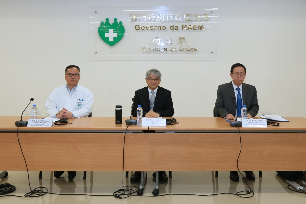 Estiveram presentes na conferência de imprensa, além do Director dos Serviços de Saúde, Dr. Lei Chin Ion, o Director do CHCSJ, substituto, Dr. Lei Wai Seng e o chefe do CDC, médico Lam Chong.