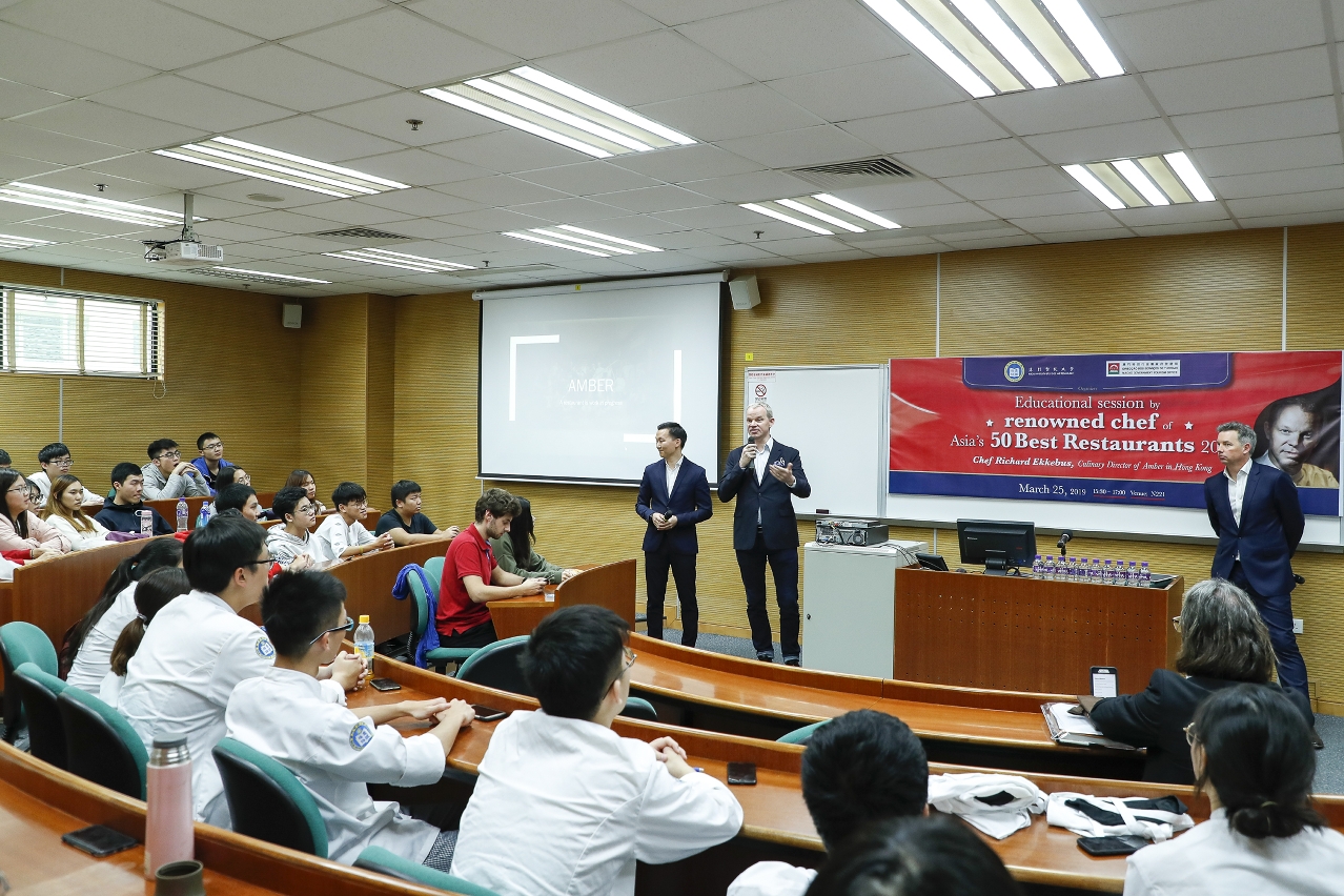 À tarde, os 50 Melhores Restaurantes da Ásia estiveram na Universidade de Ciência e Tecnologia de Macau (MUST, na sigla inglesa) para conduzir uma sessão educativa para cerca de 50 estudantes do curso de Gestão de Restauração e Bebidas. O orador convidado foi o chefe Richard Ekkebus, director culinário do Amber, em Hong Kong, restaurante número sete da lista dos 50 Melhores Restaurantes da Ásia em 2018, que falou sobre a sua experiência e abordagem usada por ele e a sua equipa na reinvenção do restaurante, actualmente em fase de renovação. O chefe nascido na Holanda conversou e respondeu às perguntas dos alunos da MUST, partilhando a sua experiência internacional, influências e conselhos, encorajando os alunos a seguirem os seus sonhos, e falando sobre o processo de inovação do menu, interior, estilo de serviço, práticas sustentáveis e inspiração do restaurante que dirige.