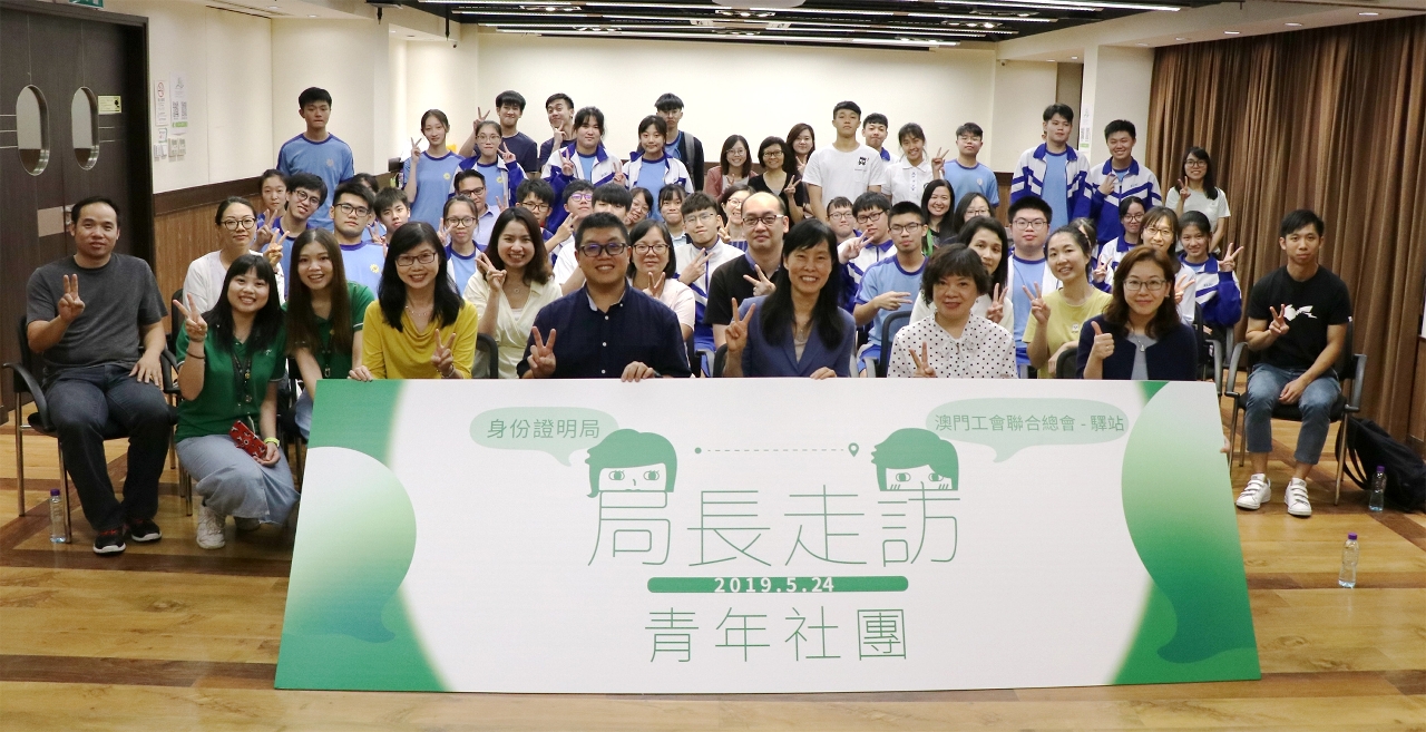 A fim de reforçar permanentemente o diálogo e o intercâmbio entre os serviços públicos e os jovens de Macau, a Directora dos Serviços de Identificação (DSI), Ao Ieong U, acompanhada pelas chefias da DSI, esteve presente hoje (dia 24 de Maio) no Centro de Serviços – Stage – subordinado à Federação das Associações dos Operários de Macau, para visitar as instalações e melhor conhecer os trabalhos do centro, assim como criar um dinamismo eficaz com os jovens, tendo aproveitado essa oportunidade para ouvir e recolher as opiniões e sugestões destes em relação aos trabalhos no âmbito das atribuições da DSI, as quais servirão de referência para o desenvolvimento dos trabalhos da DSI no futuro.