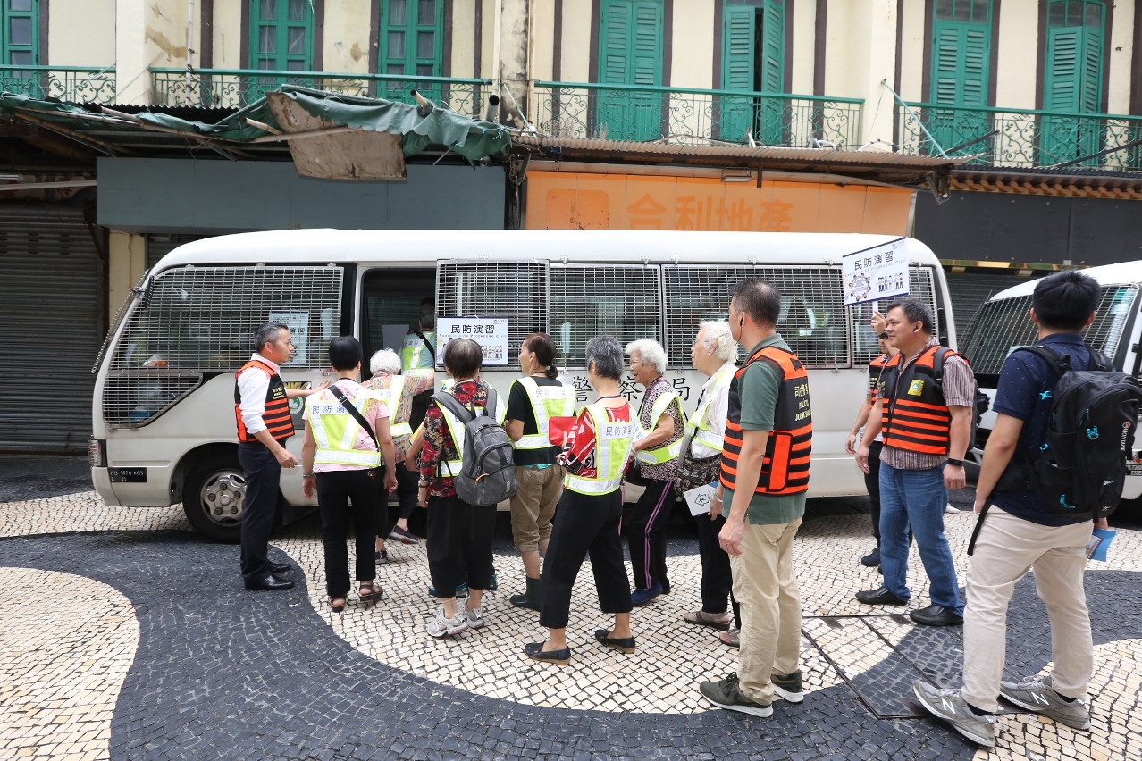 Sessão de esclarecimento e simulacro sobre o “Plano de evacuação em situações de Storm Surge durante a passagem de tufão” organizados pelos PJ e IAS