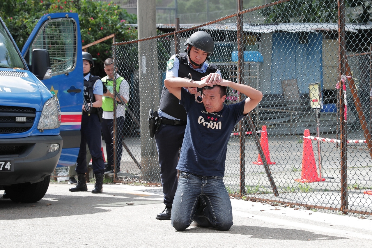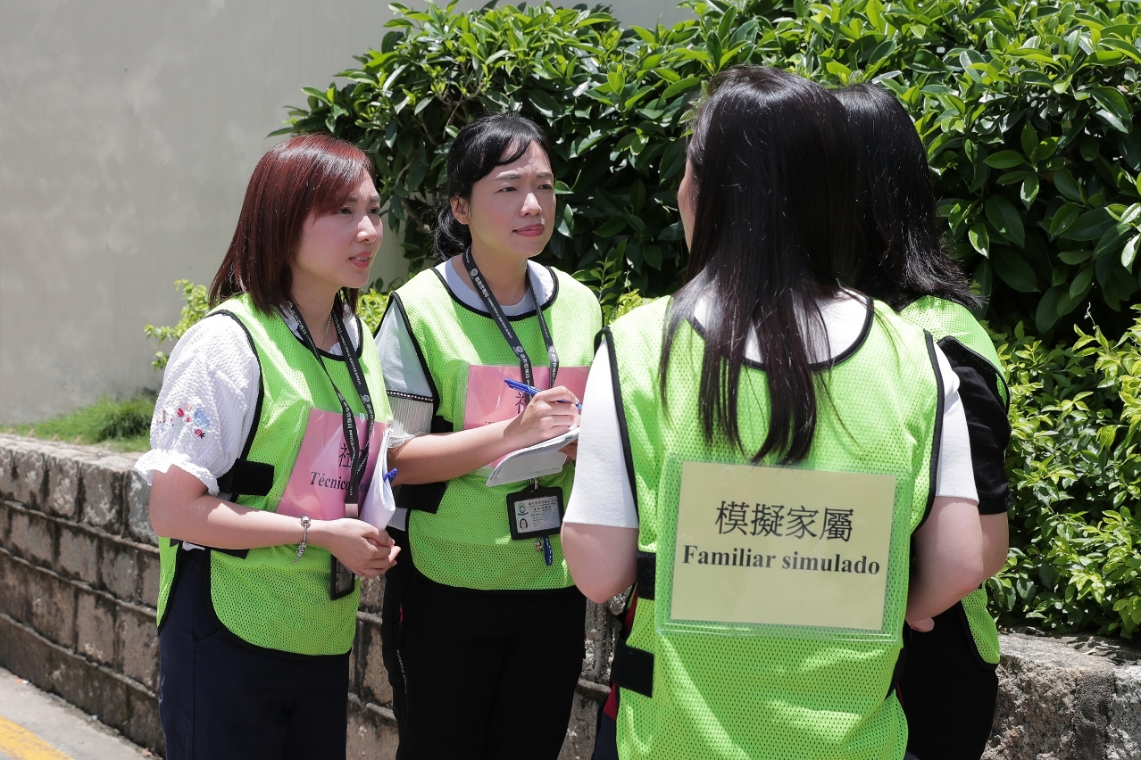 O simulacro teve a duração aproximada de 2 horas, tendo contado com cerca de 310 participantes, provenientes de equipas de vários serviços da área de segurança, nomeadamente, Serviços de Alfândega, a Unidade Especial de Polícia do CPSP, o Grupo de Operações Especiais do CPSP, o Grupo Cinotécnico do CPSP, o Grupo de Negociação para Situações de Crise da PJ, o pessoal de assistência médica do CB, a Equipa Anti-motim do EPC e os técnicos sociais da DSC, etc.. Simultaneamente, em cooperação com o Gabinete de Comunicação Social e os Serviços de Saúde, no que diz respeito à transmissão de informações, agendamento de recursos e coordenação da comunicação, o resultado do simulacro foi satisfatório, tendo conseguido a eficácia esperada do plano de operação.