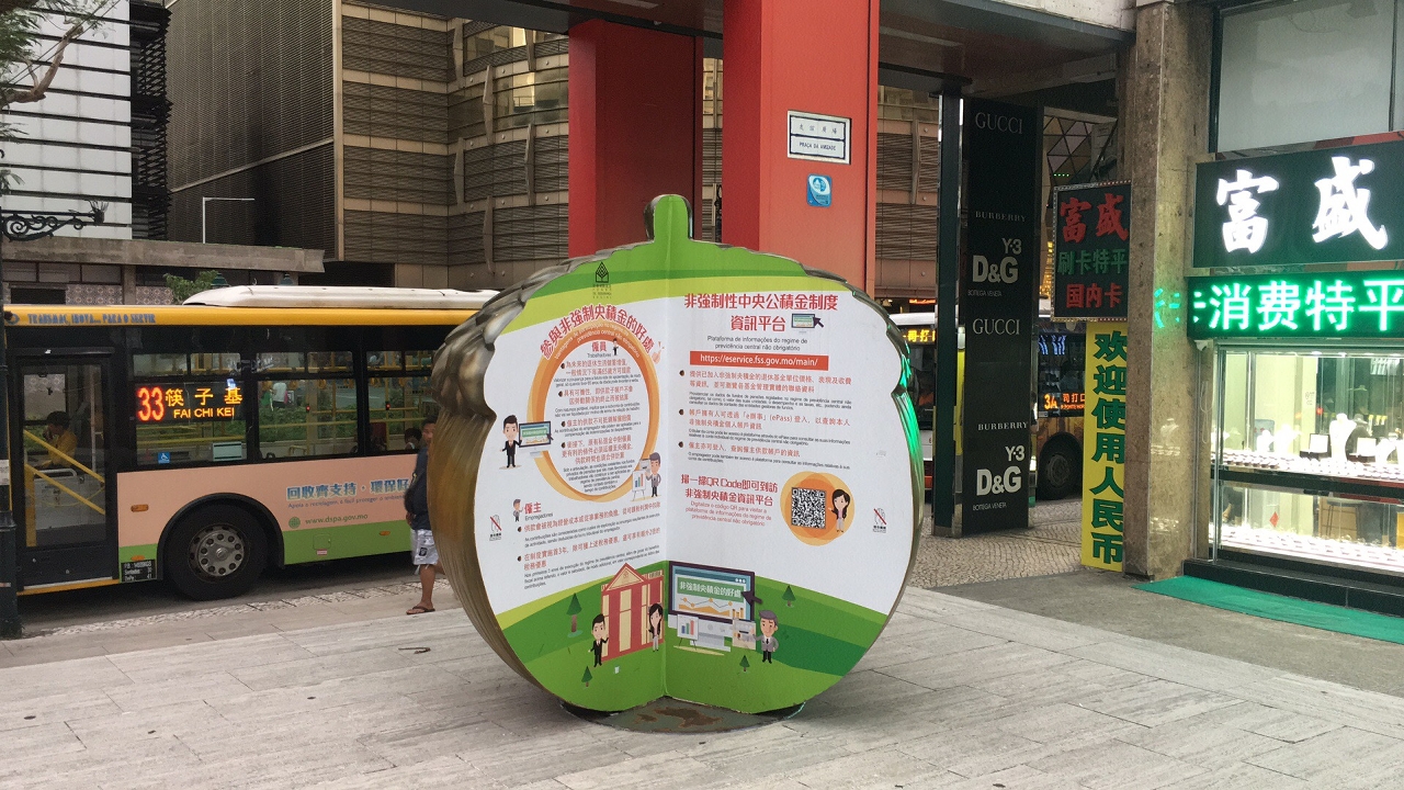 Com vista a reforçar o conhecimento dos residentes na comunidade sobre o regime de previdência central não obrigatório, o Fundo de Segurança Social produziu especialmente material de publicidade ao ar livre, "Bolota - Previdência", para fins de realização de uma exposição itinerante em locais diferentes de Macau e Taipa. A partir de hoje até 10 de Agosto de 2019, os residentes podem encontrar-se com a “Bolota – Previdência” na Praça da Amizade, Zona de Lazer da Alameda da Tranquilidade e Parque Dr. Carlos d' Assumpção, nestas exposições apresentam-se principalmente as vantagens de participação no regime de previdência central não obrigatório.