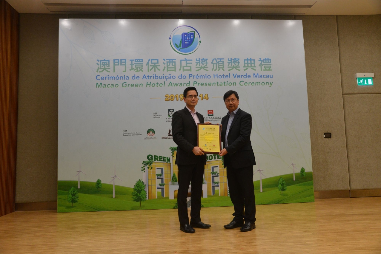 A Cerimónia de Atribuição do Prémio Hotel Verde Macau teve lugar hoje (dia 14) no Auditório da Direcção dos Serviços de Protecção Ambiental (DSPA), sito no rés-do-chão do Edifício CEM. Neste evento foram atribuídos louvores aos 19 hotéis premiados (vide o anexo sobre a lista de prémios). Os hotéis galardoados registaram, também, uma melhoria evidente nas diversas vertentes, nomeadamente: a conservação de energia e a poupança de água, a redução de resíduos e reciclagem, com vista a contribuir em conjunto para um desenvolvimento sustentável de Macau.