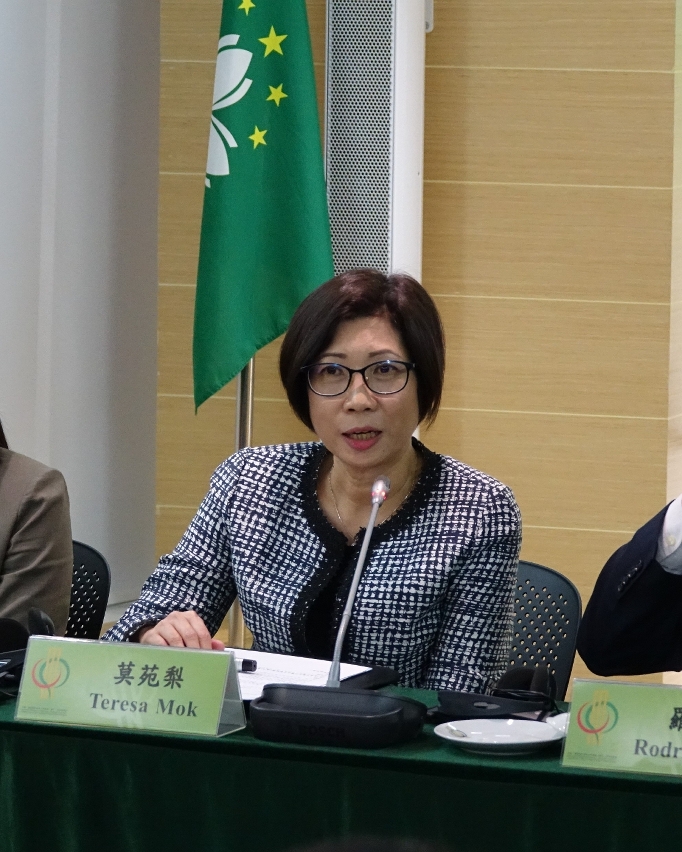 • A Coordenadora do Gabinete de Apoio, Dr.ª Mok Iun Lei, em entrevista à comunicação social
