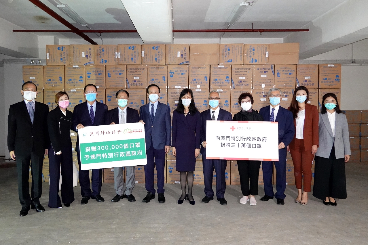 A Secretária para os Assuntos Sociais e Cultura, Ao Ieong U, recebeu hoje (dia 25), em nome do Governo da RAEM, 600 mil máscaras doadas, das quais, metade foi oferecida pela Cruz Vermelha de Macau, e outra metade pela Associação Geral dos Chineses Ultramarinos de Macau e pela Associação Comercial de Indonésia de Macau.