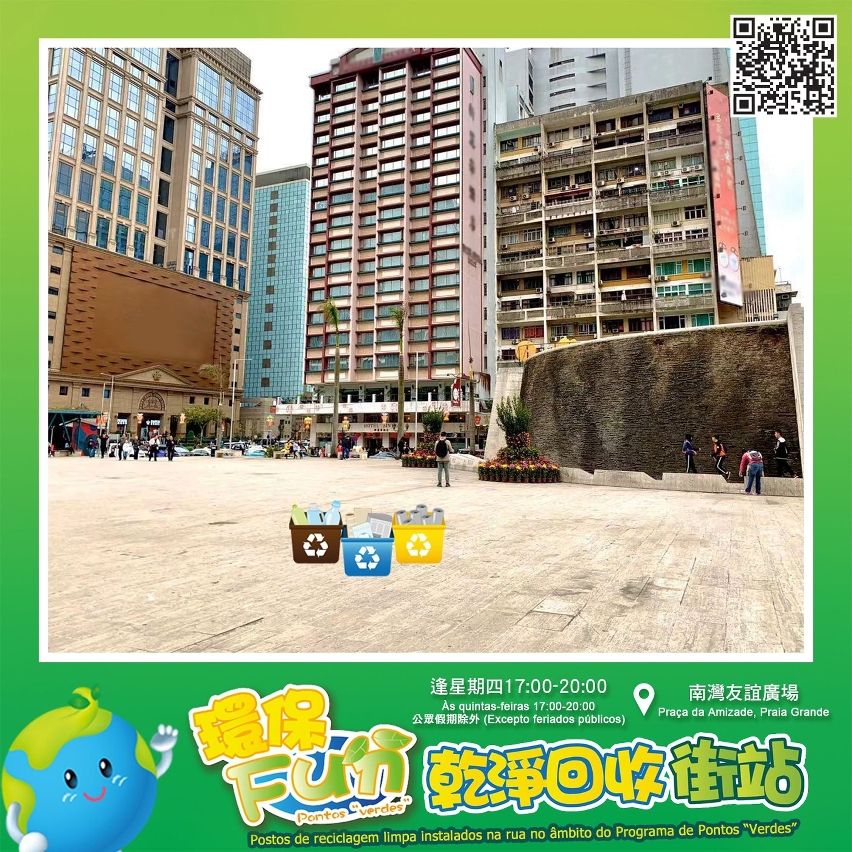 Com intuito de comemorar, no próximo dia 22 de Abril, o “Dia da Terra”, para divulgar a mensagem sobre a protecção ambiental, a Direcção dos Serviços de Protecção Ambiental (DSPA), em colaboração com as associações de protecção ambiental, procede a melhorias e optimização dos 19 postos de recolha do Programa de Pontos “Verdes” existentes. A partir de amanhã (dia 15), serão progressivamente instalados mais “postos de reciclagem limpa instalados na rua no âmbito do Programa de Pontos “Verdes””, nomeadamente no Parque Dr. Carlos d'Assumpção do NAPE, na Praça da Amizade da Praia Grande e na Travessa de Martinho Montenegro do Bairro de San Kio (nas proximidades do Banco Tai Fung, S.A., na Rua da Barca). Foi disponibilizado, ainda, o horário de recolha nocturno e durante os domingos, o que permite que aos “empregados” e cidadãos poder pôr em prática a reciclagem limpa após a sua saída do trabalho ou durante os feriados (é favor consultar o mapa anexo para mais pormenores).