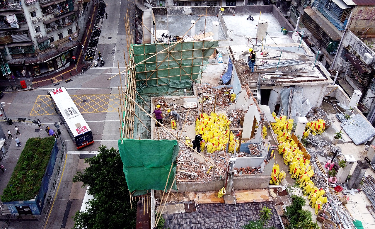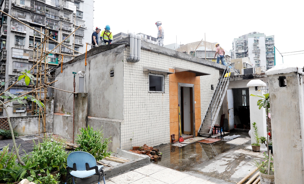 A primeira acção de demolição de obras ilegais realizada em Maio foi num dos terraços de um edifício baixo situado no Istmo de Ferreira do Amaral, tendo os infractores efectuado várias obras ilegais designadamente uma cobertura em betão, paredes em alvenaria e tijolo, colocação de tapumes metálicos, vedação, etc. Após a DSSOPT ter recebido várias queixas, abriu os respectivos processos para fins de acompanhamento. Aliás, o Governo já tinha realizado em anos anteriores uma acção de demolição de obras ilegais num desses terraços e obras ilegais que foram efectuadas em outros 4 terraços foram os próprios infractores que procederam a sua demolição. Dado que o prazo para a demolição por iniciativa própria tinha expirado e as obras ilegais se mantinham, o Grupo realizou uma acção de demolição.