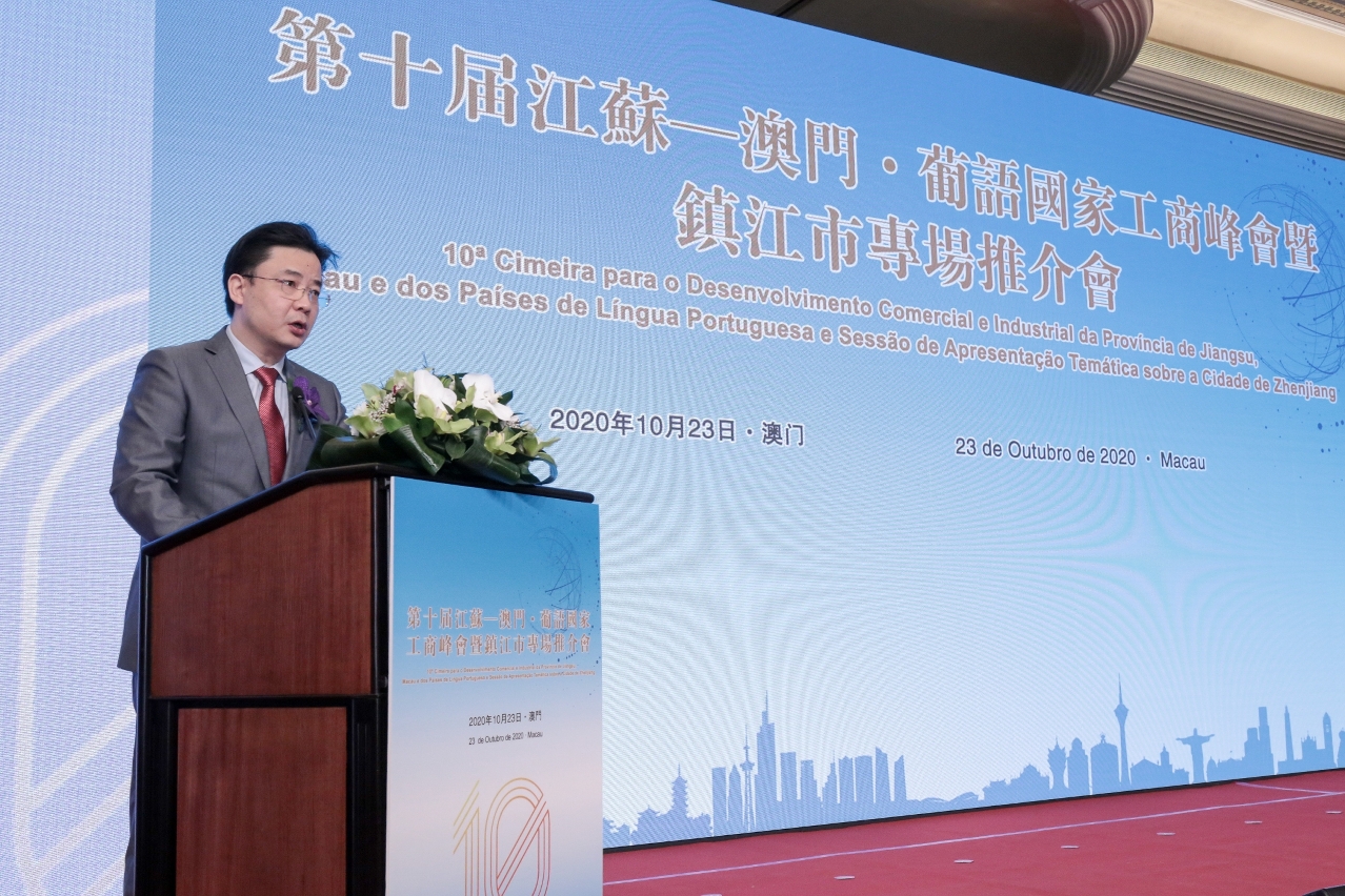 No dia 23 de Outubro, o Secretário-Geral Adjunto do Secretariado Permanente do Fórum de Macau, Dr. Ding Tian, o Secretário-Geral Adjunto, Dr. Paulo Espírito Santo e os Delegados dos Países de Língua Portuguesa participaram na 10.ª Cimeira para o Desenvolvimento Comercial e Industrial da Província de Jiangsu, Macau e os Países de Língua Portuguesa e Apresentação Temática sobre a Cidade de Zhenjiang, realizada em Macau, a qual contou ainda com a presença do Vice-Governador da Província de Jiangsu, Dr. Hui Jianlin, o Director-Geral Adjunto do Gabinete de Ligação do Governo Popular Central na RAEM, Dr. Yao Jian, o Secretário para a Economia e Finanças, Dr. Lei Wai Nong e os Embaixadores e Diplomatas dos Países de Língua Portuguesa acreditados em Pequim.
