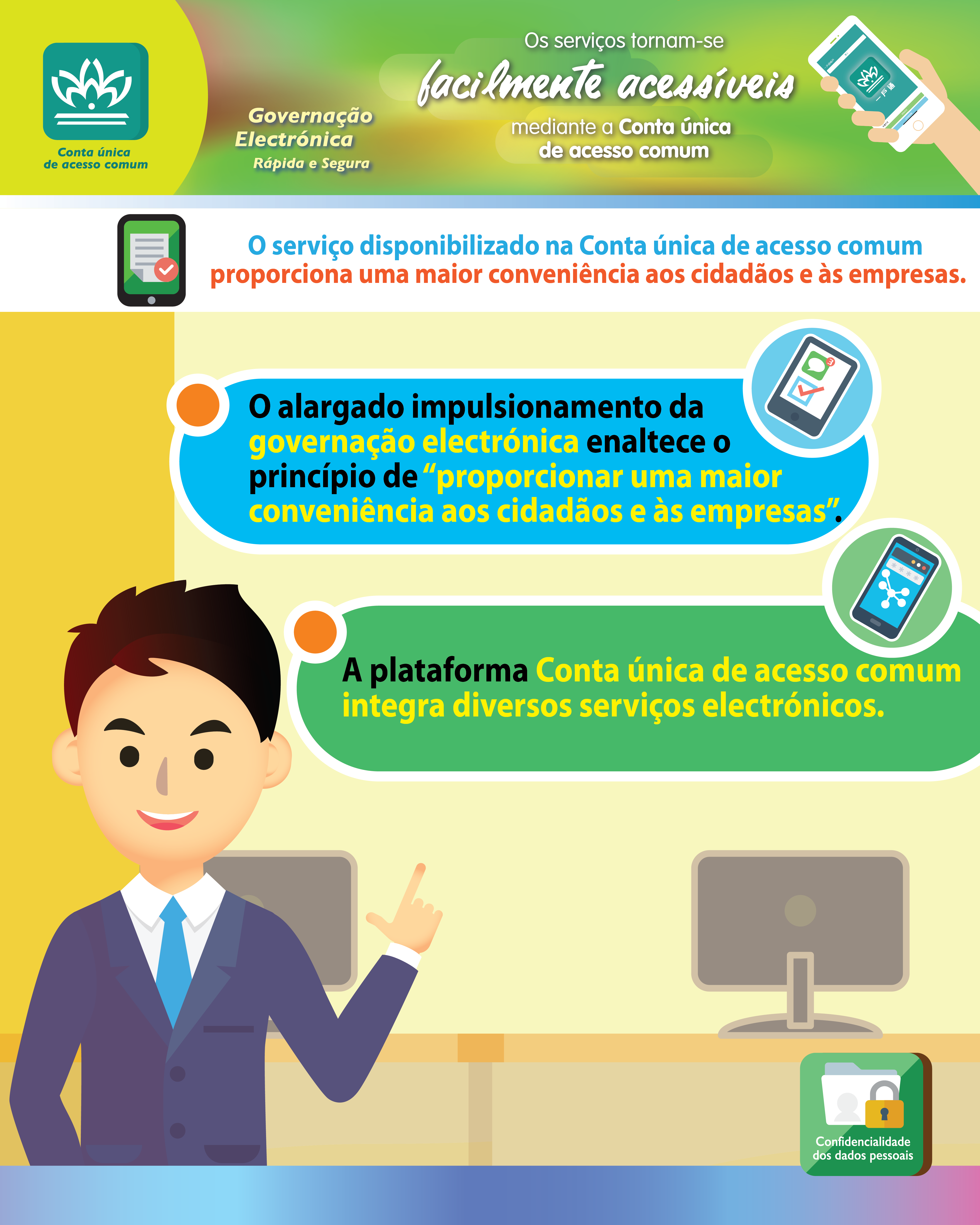 A Direcção dos Serviços de Administração e Função Pública irá aumentar progressivamente o número de serviços a disponibilizar na Conta única de acesso comum, promovendo, de forma ordenada, a electronização dos serviços públicos relacionados com a vida da população e com actividades comerciais de diferentes sectores, proporcionando meios de tratamento de pedidos online mais seguros e convenientes para os cidadãos.