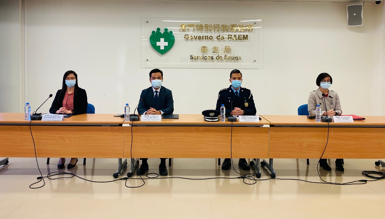 Estiveram presentes na conferência de imprensa, o médico adjunto da Direcção do CHCSJ, Dr. Lo Iek Long, o Chefe da Divisão de Operações e Comunicações do Corpo de Polícia de Segurança Pública, Dr. Ma Chio Hong, a Chefe da Divisão de Relações Públicas da Direcção dos Serviços de Turismo, Dr.ª Lau Fong Chi, e a coordenadora do Núcleo de Prevenção de Doenças Infeciosas do Centro de Prevenção e Controlo da Doença, Dr.ª Leong Iek Hou.