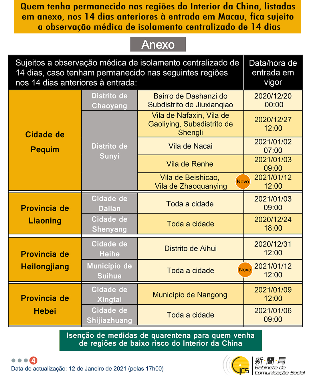 (Infografia) Medidas e exigências de controlo sanitário para a entrada em Macau de indivíduos de diferentes identidades, actualizadas no dia 12 de Janeiro de 2021
