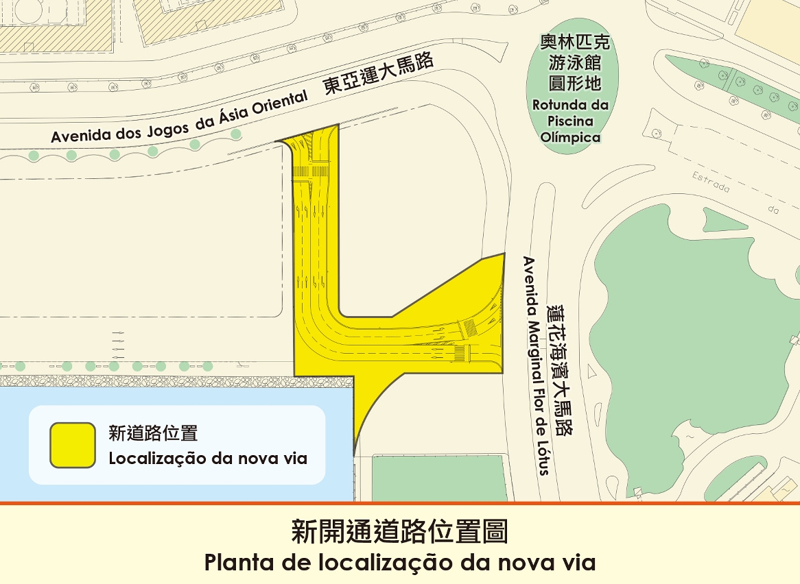 A empreitada supramencionada tem por objectivo de construir duas vias na Taipa junto à Avenida Marginal Flor de Lótus. Ficou concluída primeiramente a via que faz a ligação entre a Avenida Marginal Flor de Lótus e a Avenida dos Jogos da Ásia Oriental. Esta via tem cerca de 180m e quatro faixas de rodagem de duplo sentido e entrou em funcionamento hoje de manhã.