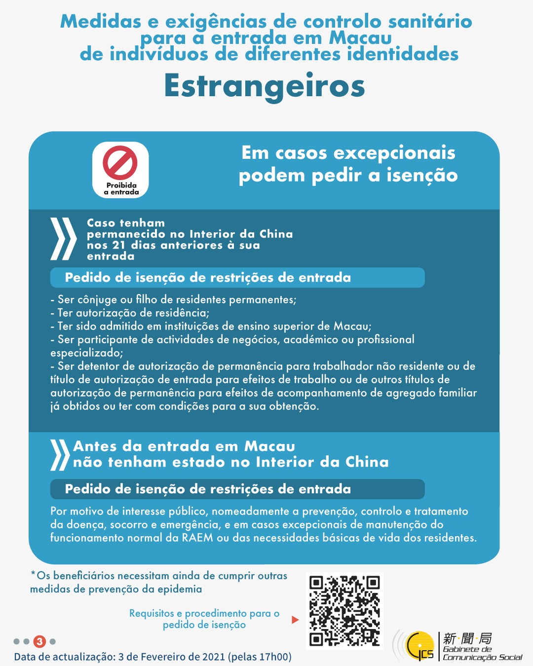 (Infografia) Medidas e exigências de controlo sanitário para a entrada em Macau de indivíduos de diferentes identidades, actualizadas no dia 3 de Fevereiro de 2021