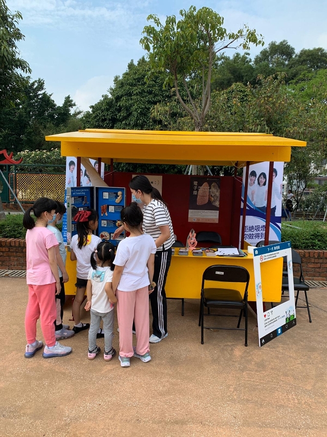 Para consciencializar a população sobre os malefícios do tabaco e do cigarro electrónico, e para promover a cessação tabágica, o “Posto Consultivo do Malefício Provocado pelo Tabagismo”, criado pelos Serviços de Saúde, esteve disponível nos meses de Maio e Junho, aos sábados de tarde, em nove locais de Macau (nomeadamente, Parque Municipal Dr. Sun Yat Sen, Jardim de Luís de Camões, Zona de Lazer da Rua Norte do Patane, Jardim da Flora, Jardim do Mercado do Iao Hon, Zona de Lazer do Edifício Lok Yeung Fa Yuen (Rua do General Ivens Ferraz), Praça da Amizade, Largo Eduardo Marques do Coloane, Jardim da Cidade das Flores na Taipa e espaço lateral), tendo sido realizadas diversas actividades relacionadas com a prevenção do tabaco, tais como prestação de esclarecimentos de dúvidas sobre os malefícios do tabaco, de serviços de medição da pressão arterial, e do teste gratuito de dependência de nicotina destinado a fumadores, bem como apresentação de serviços de consulta externa de cessação tabágica dos Serviços de Saúde.