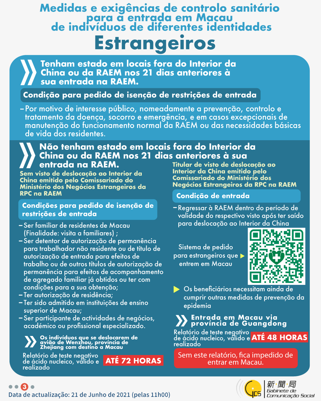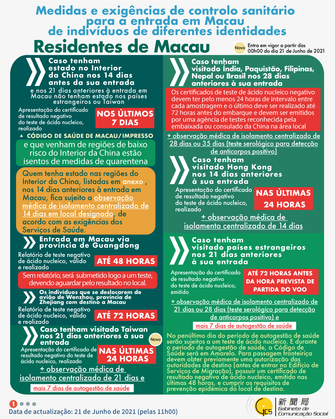 (Infografia)Medidas e exigências de controlo sanitário para a entrada em Macau de indivíduos de diferentes identidades, actualizadas no dia 21 de Junho de 2021