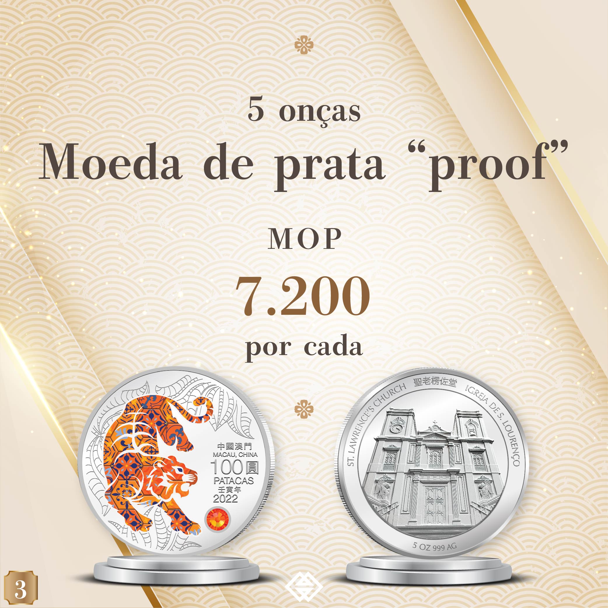 A Autoridade Monetária de Macau (AMCM) emitirá, em breve, as moedas comemorativas do Ano Novo Lunar do Tigre (2022), as quais poderão ser subscritas “online” a partir da próxima segunda-feira (dia 12).