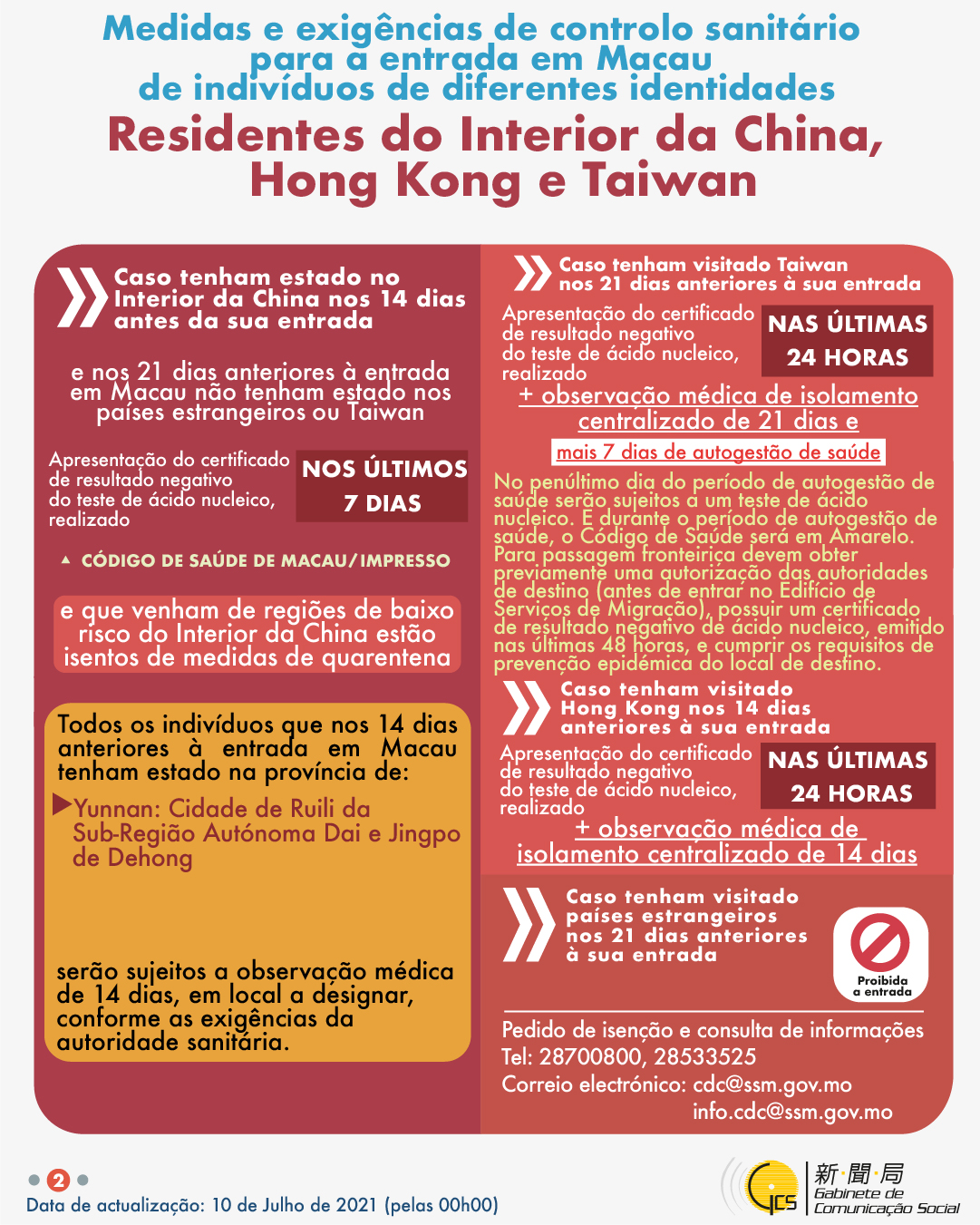(Infografia)Medidas e exigências de controlo sanitário para a entrada em Macau de indivíduos de diferentes identidades, actualizadas no dia 10 de Julho de 2021