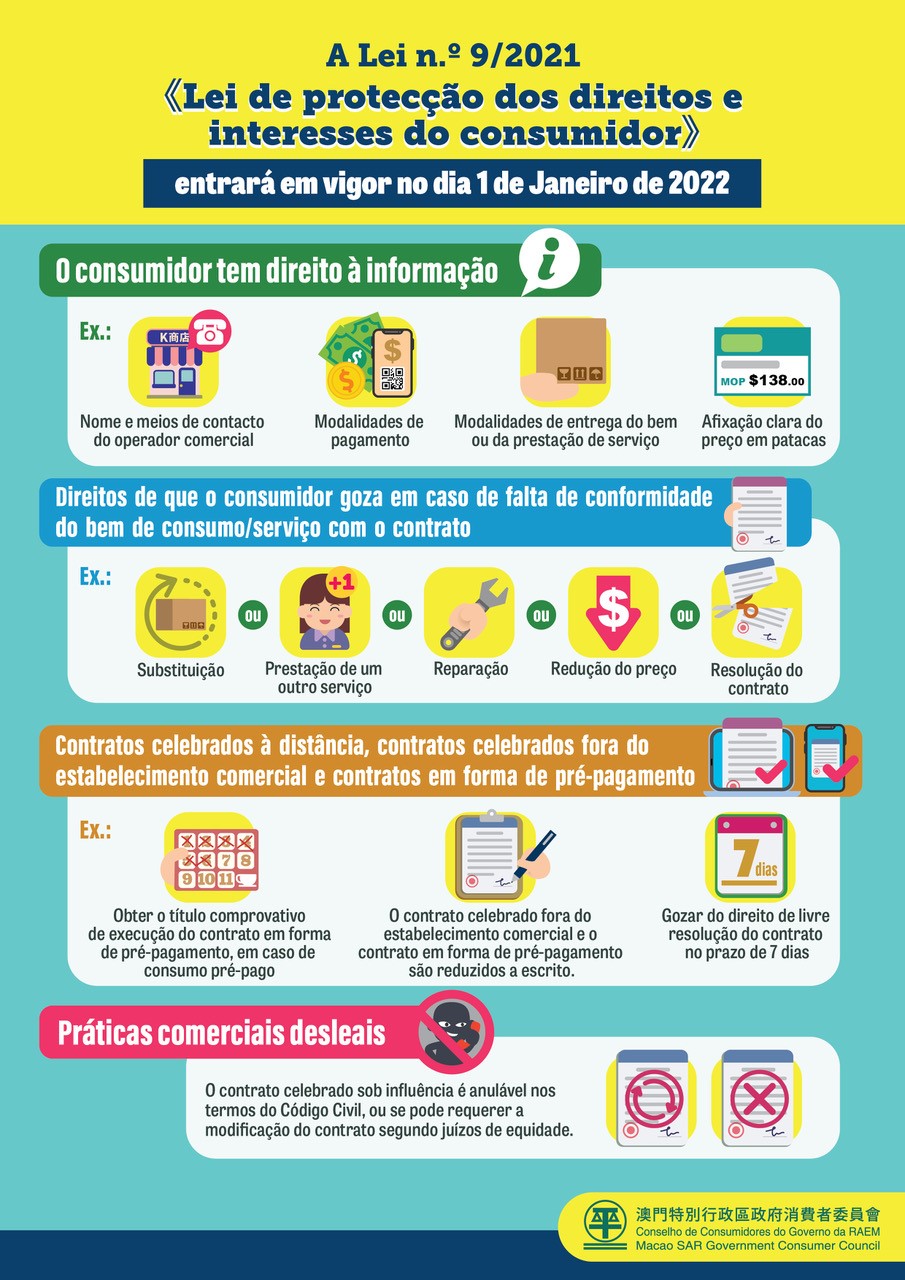 Foi publicada, no Boletim Oficial da Região Administrativa Especial de Macau n.º 28, I Série, lançado hoje (dia 12), a Lei n.º 9/2021 (Lei de protecção dos direitos e interesses do consumidor), que entrará em vigor no dia 1 de Janeiro de 2022.