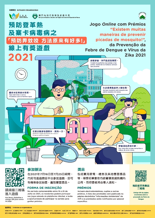 Com o objectivo de sensibilizar e reforçar os conhecimentos dos cidadãos sobre a prevenção da Febre de Dengue e do Vírus Zika, o Grupo de Trabalho de Prevenção Contra a Febre de Dengue realizará, entre os dias 16 e 25 de Julho do corrente ano, um jogo online intitulado “Existem muitas maneiras de prevenir picadas de mosquito”, que contempla prémios, esperando aumentar a consciencialização da população contra mosquitos através desta actividade lúdica.
