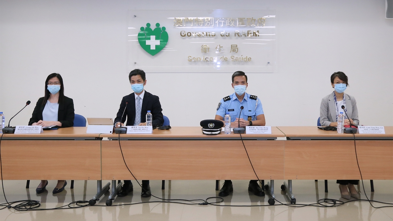 Estiveram presentes na conferência de imprensa: o Médico-Adjunto da Direcção do Centro Hospitalar Conde de São Januário, Dr. Tai Wa Hou, a Chefe da Divisão de Relações Públicas da Direcção dos Serviços de Turismo, Dr.ª Lam Tong Hou, o Chefe da Divisão de Operações e Comunicações da PSP, Dr. Ma Chio Hong e a Coordenadora do Núcleo de Prevenção de Doenças Infecciosas e Vigilância de Doença do Centro de Prevenção e Controlo da Doença dos Serviços de Saúde, Dr.ª Leong Iek Hou.