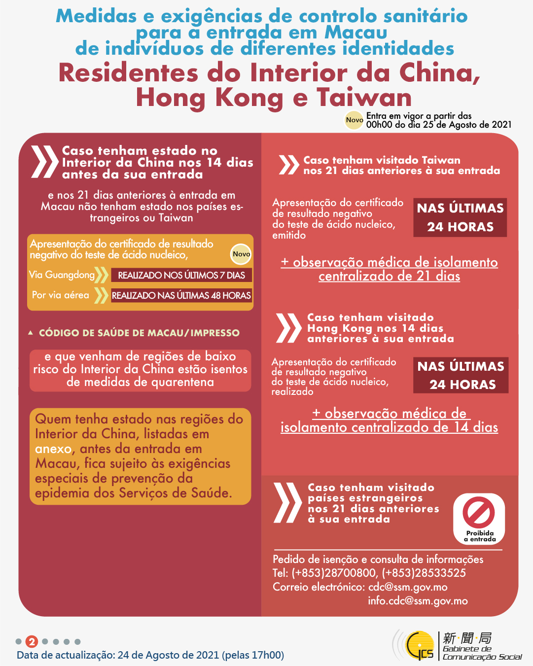 (Infografia)Medidas e exigências de controlo sanitário para a entrada em Macau de indivíduos de diferentes identidades, actualizadas no dia 24 de Agosto de 2021