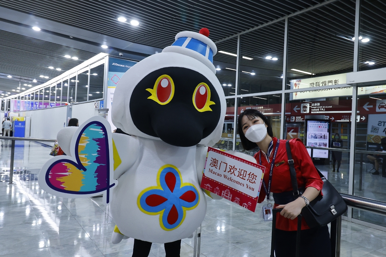 Seis voos aterraram ontem em Macau, mascote “Mak Mak” recebe calorosamente visitantes