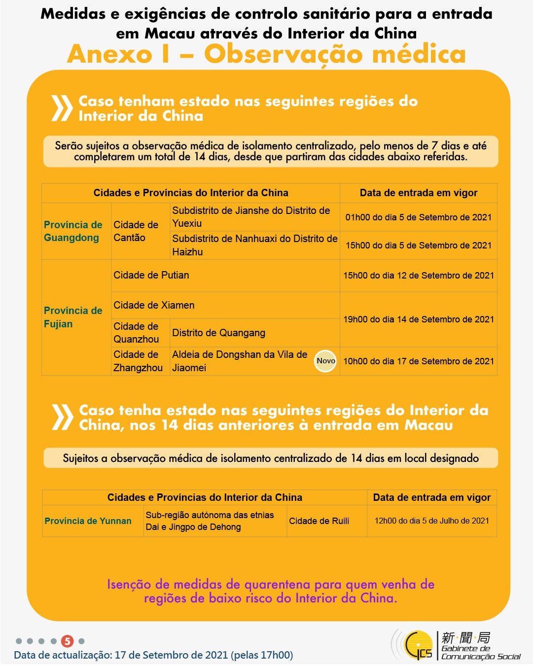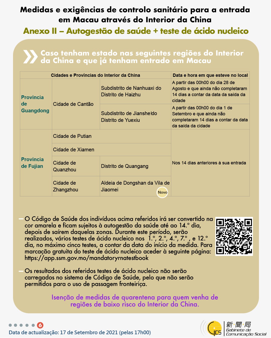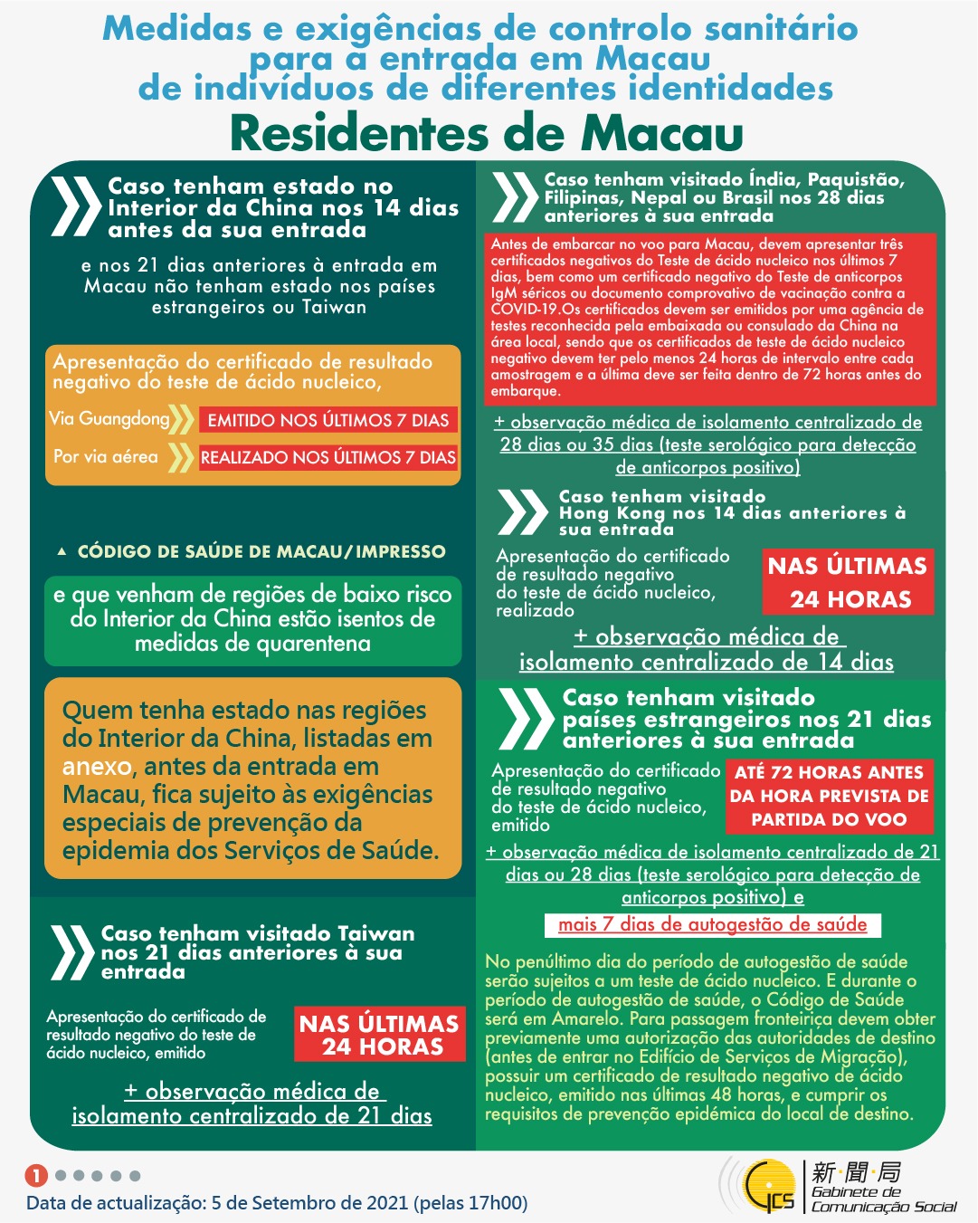 (Infografia)Medidas e exigências de controlo sanitário para a entrada em Macau de indivíduos de diferentes identidades, actualizadas no dia 17 de Setembro de 2021