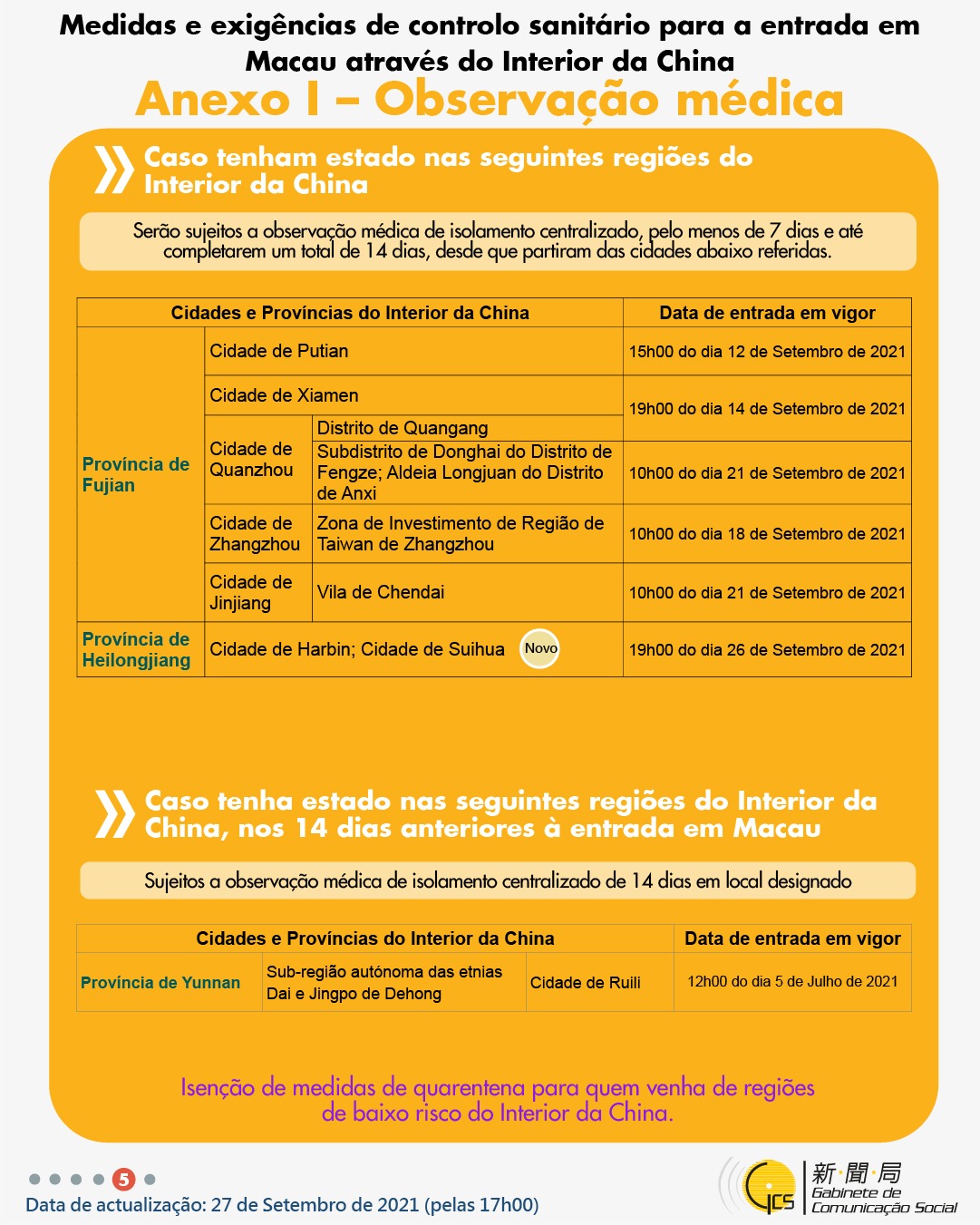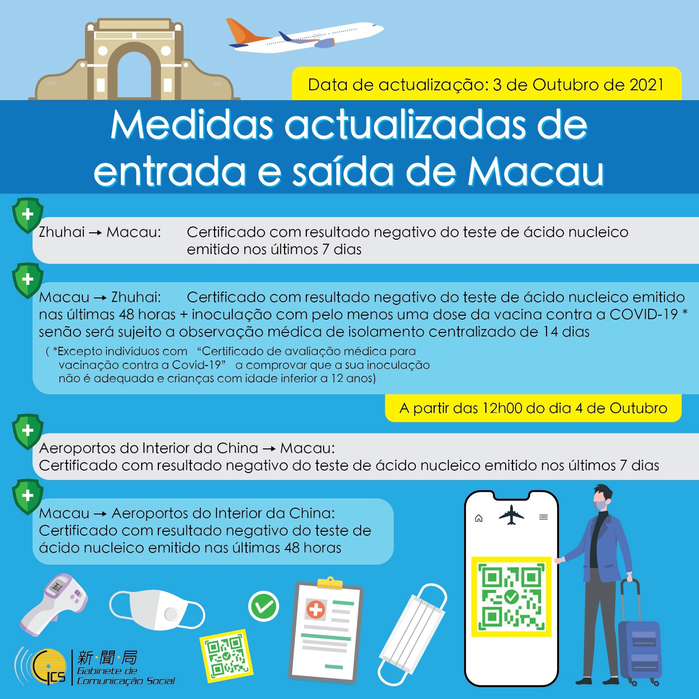 • Medidas mais recentes de entrada e saída de Macau - actualização de 3 de Outubro