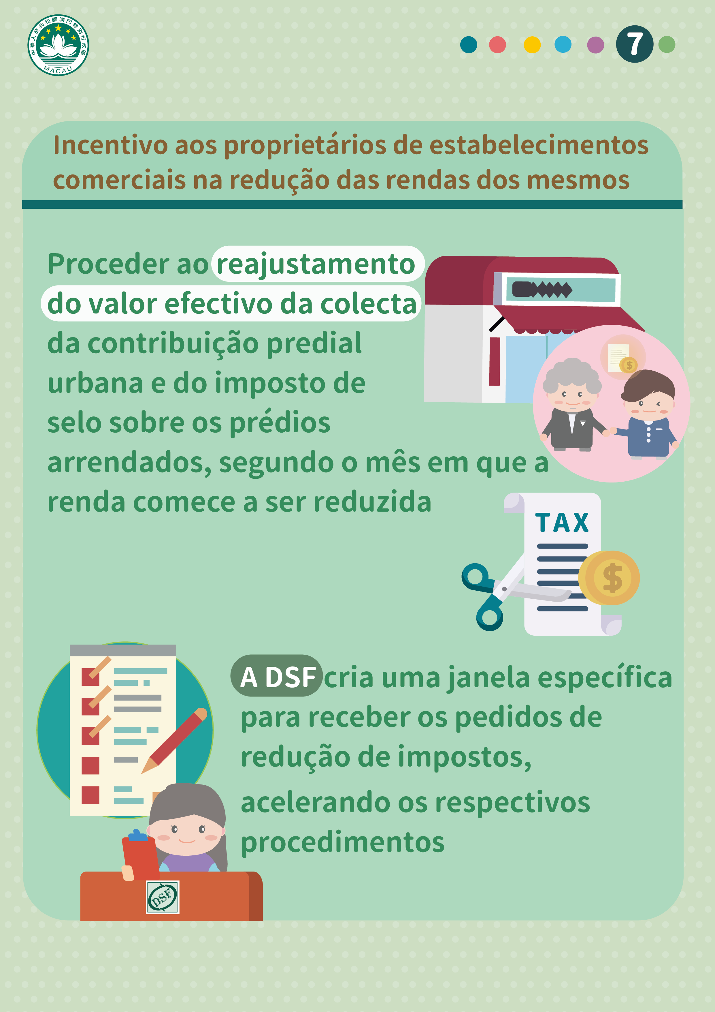 A Direcção dos Serviços de Finanças (DSF) reajustará o valor efectivo da colecta da contribuição predial urbana e do imposto do selo sobre os prédios arrendados, segundo o mês em que a renda comece a ser reduzida, criando uma janela específica para a recepção de pedidos de redução de impostos e acelerando o tratamento dos respectivos pedidos.