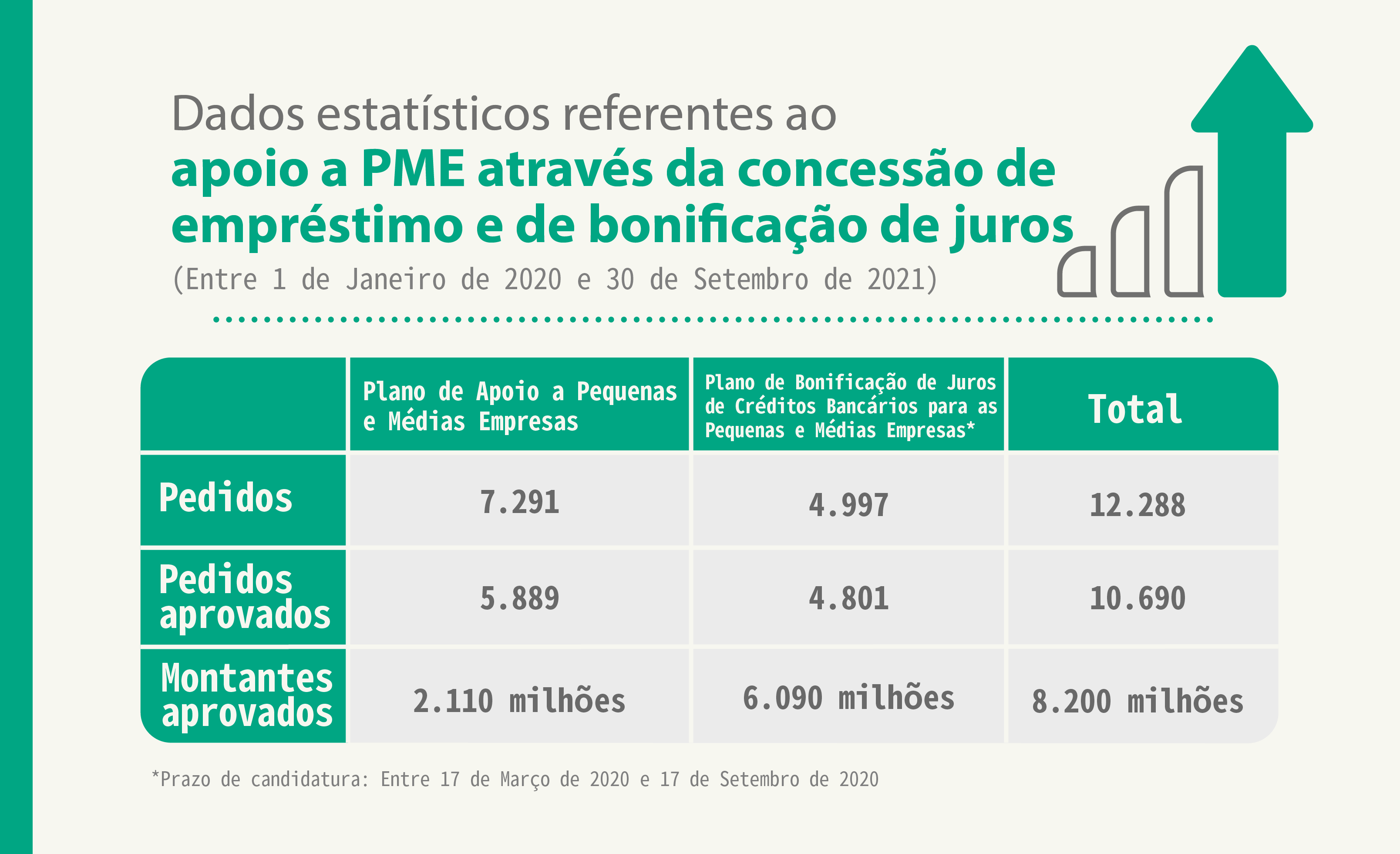 O prazo de candidaturas foi de 17 de Março a 17 de Setembro de 2020, tendo sido recebidos 4.997 pedidos, dos quais 4.801 foram aprovados (96,1%), com créditos bonificados no valor de cerca de 6,09 mil milhões de patacas.