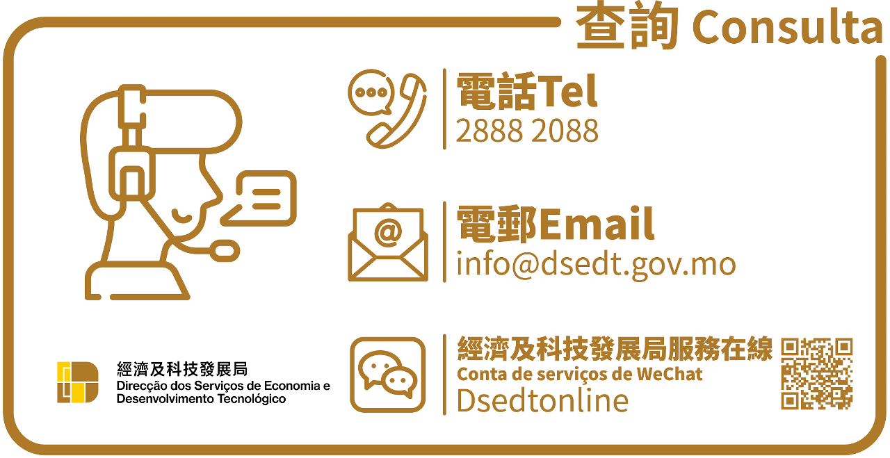 A DSEDT está fortemente empenhada em avançar com os trabalhos em articulação com a implementação das medidas de apoio a PME contra a epidemia, cujos pormenores serão divulgados ao público o mais rapidamente possível. Para mais informações, podem contactar a DSEDT através do telefone número 2888 2088, durante o horário de funcionamento, ou através da conta de WeChat“DSEDTONLINE”.