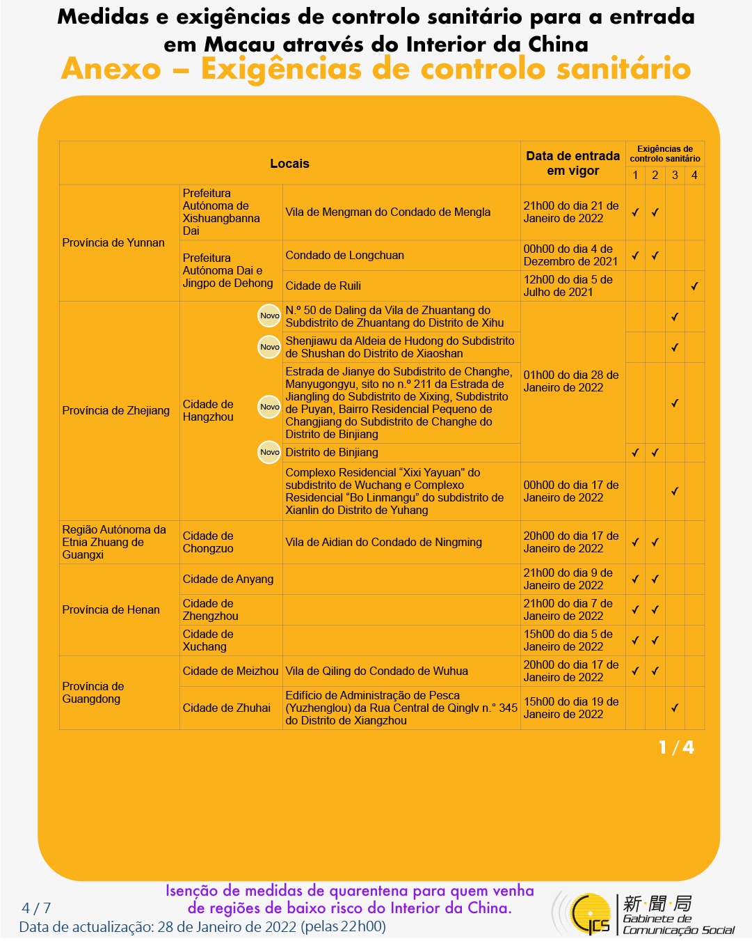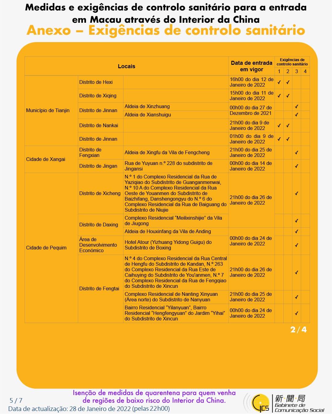 (Infografia)Medidas e exigências de controlo sanitário para a entrada em Macau de indivíduos de diferentes identidades, actualizadas no dia 28 de Janeiro de 2022