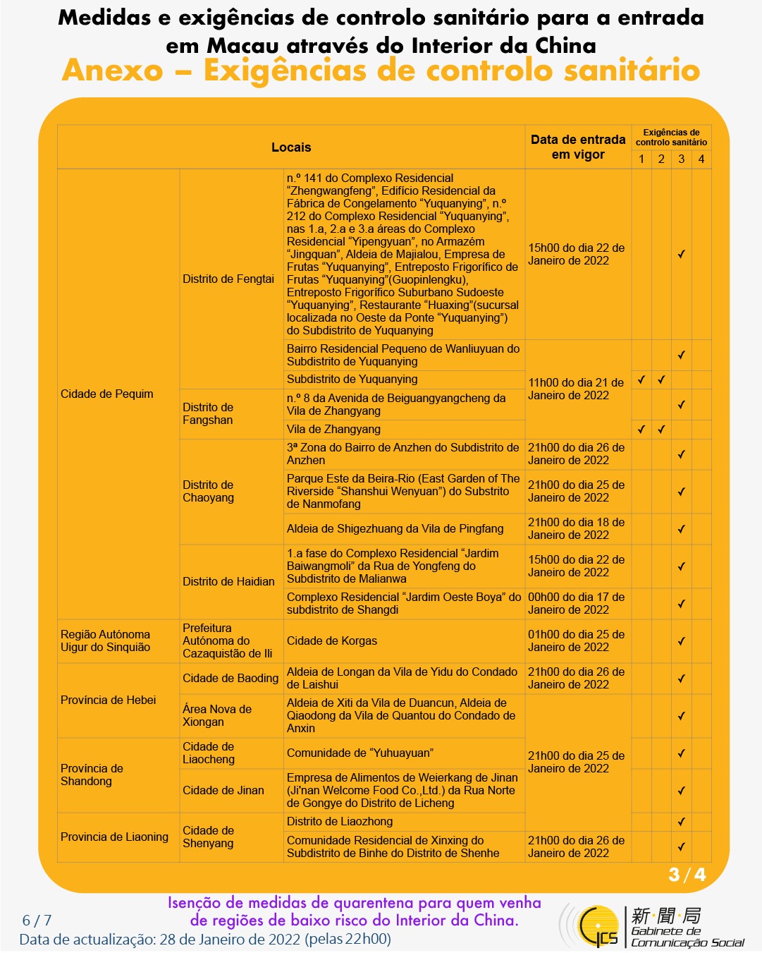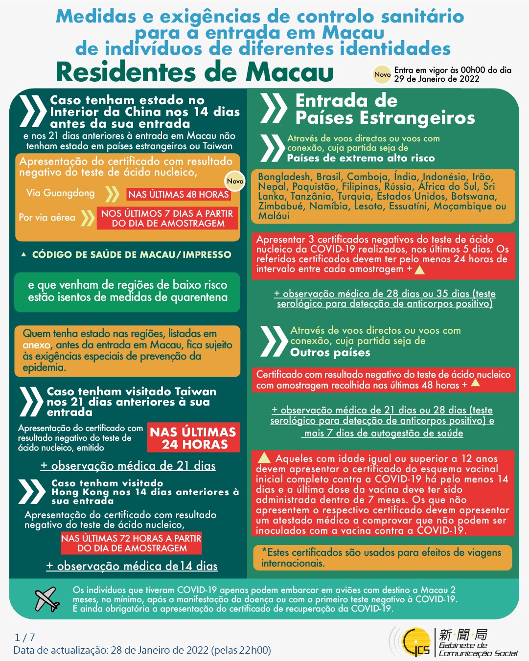 (Infografia)Medidas e exigências de controlo sanitário para a entrada em Macau de indivíduos de diferentes identidades, actualizadas no dia 28 de Janeiro de 2022