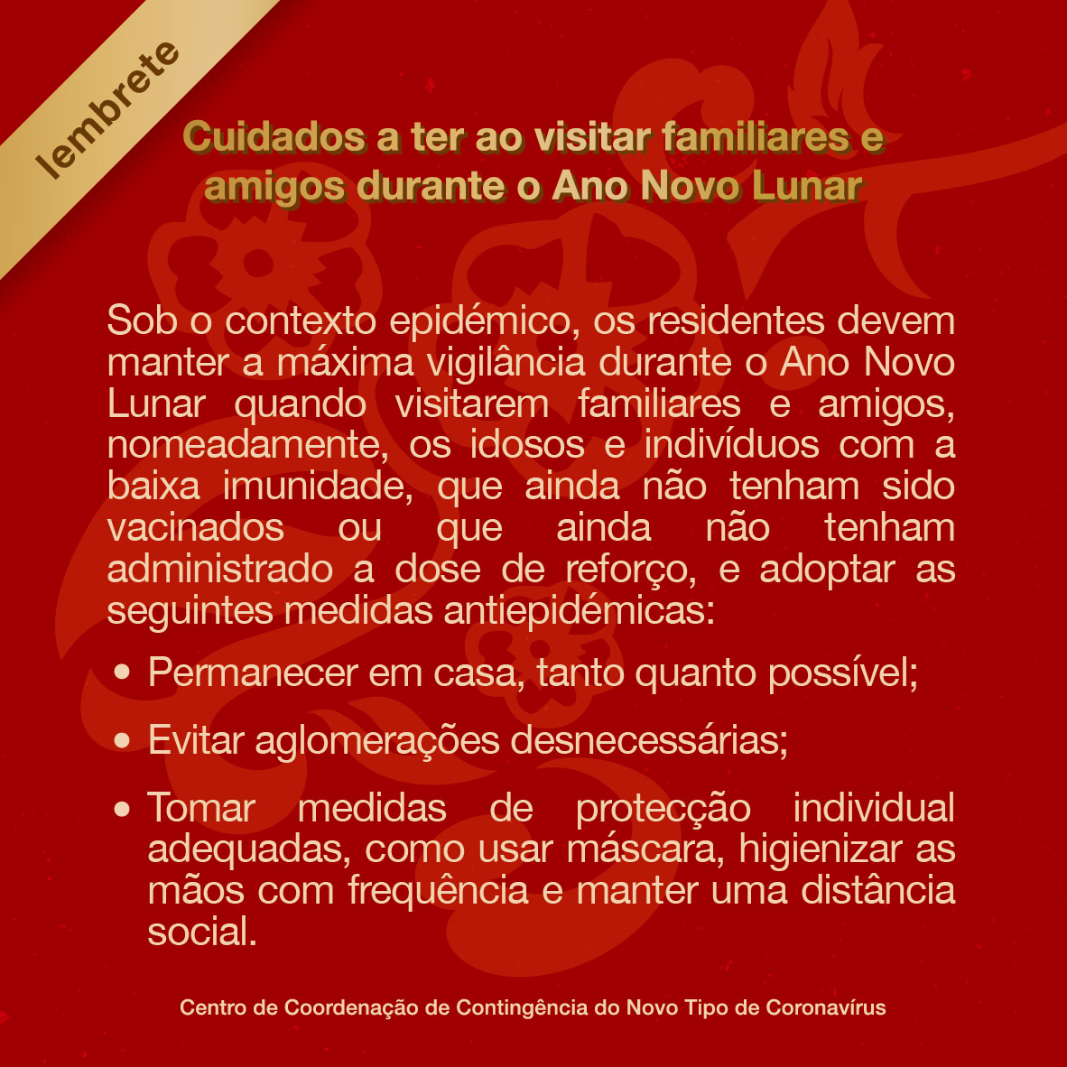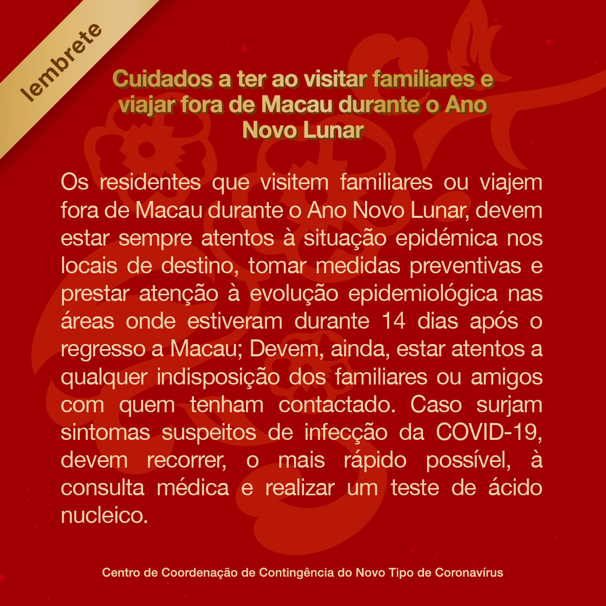 • Cuidados a ter ao visitar familiares e viajar fora de Macau durante o Ano Novo Lunar