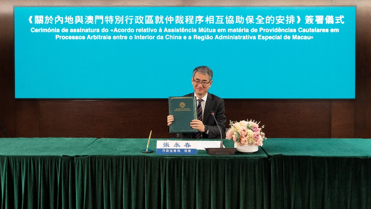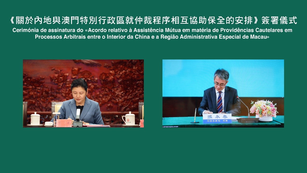 Assinado hoje o “Acordo relativo à Assistência Mútua em matéria de Providências Cautelares em Processos Arbitrais”, entre a RAEM e o Interior da China