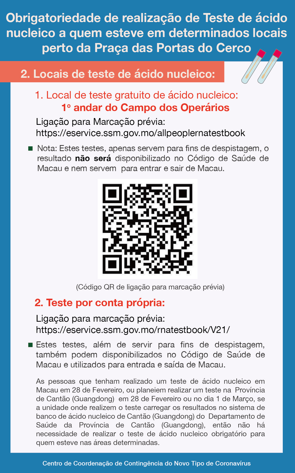 Obrigatoriedade de realização de Teste de ácido nucleico a quem esteve em determinados locais perto da Praça das Portas do Cerco