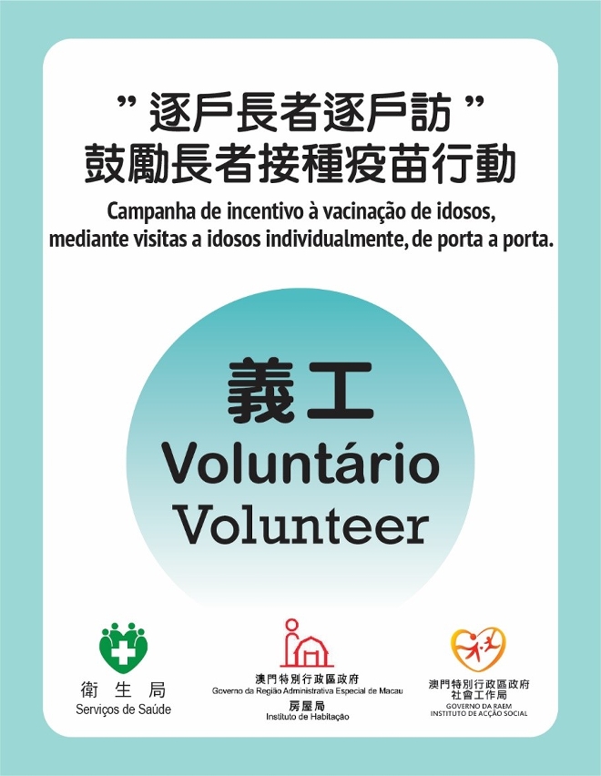 Em conjunto com o Instituto de Habitação e os Serviços de Saúde, o Instituto de Acção Social realizará um programa intitulado “campanha de incentivo à vacinação de idosos, mediante visitas a idosos, individualmente, de porta a porta”. A actividade terá lugar nos edifícios onde vive grande número de idosos e será executada/implementada por voluntários provenientes dos equipamentos sociais, tendo como objectivo não só promover informações correctas referentes à vacinação contra a Covid-19, como também ajudar os idosos necessitados na inscrição e vacinação.