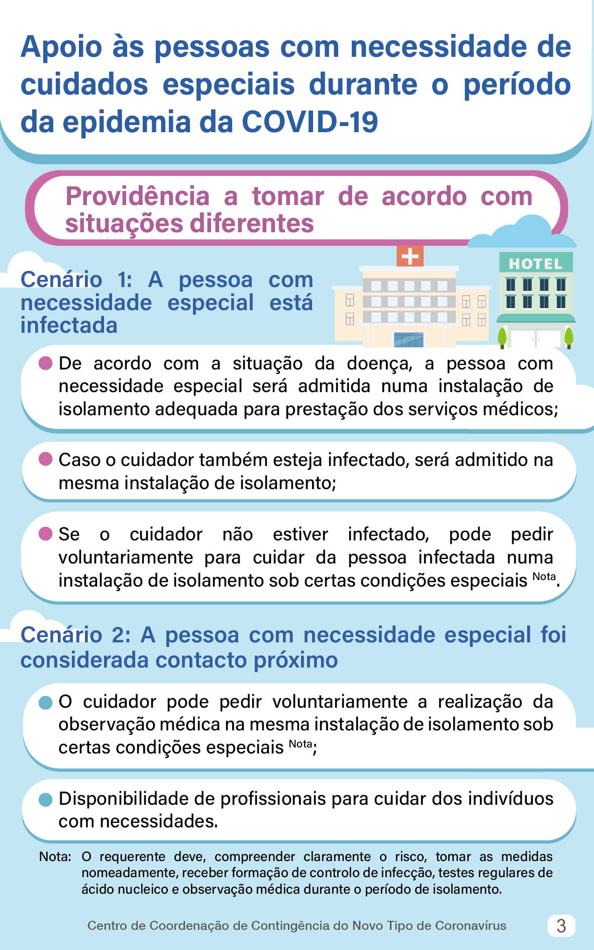 Apoio às pessoas com necessidade de cuidados especiais durante o período da epidemia da COVID-19 (infografia)